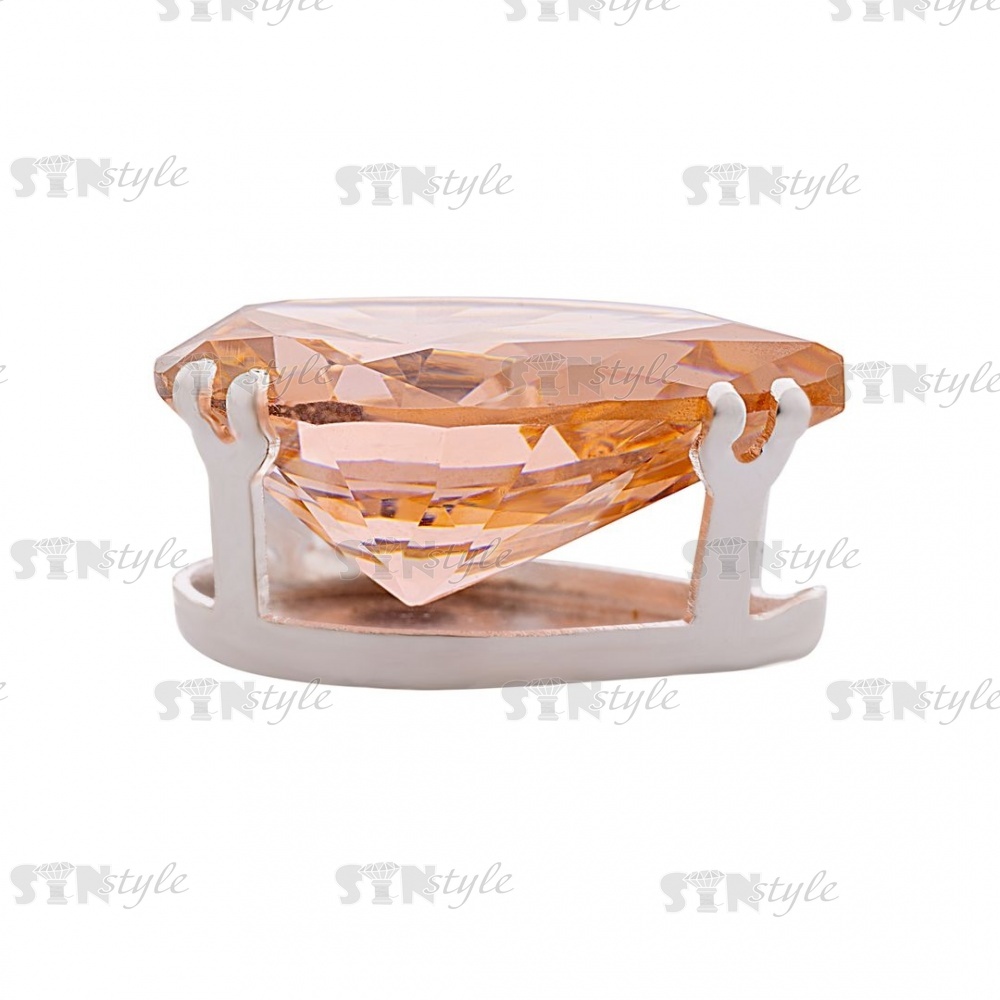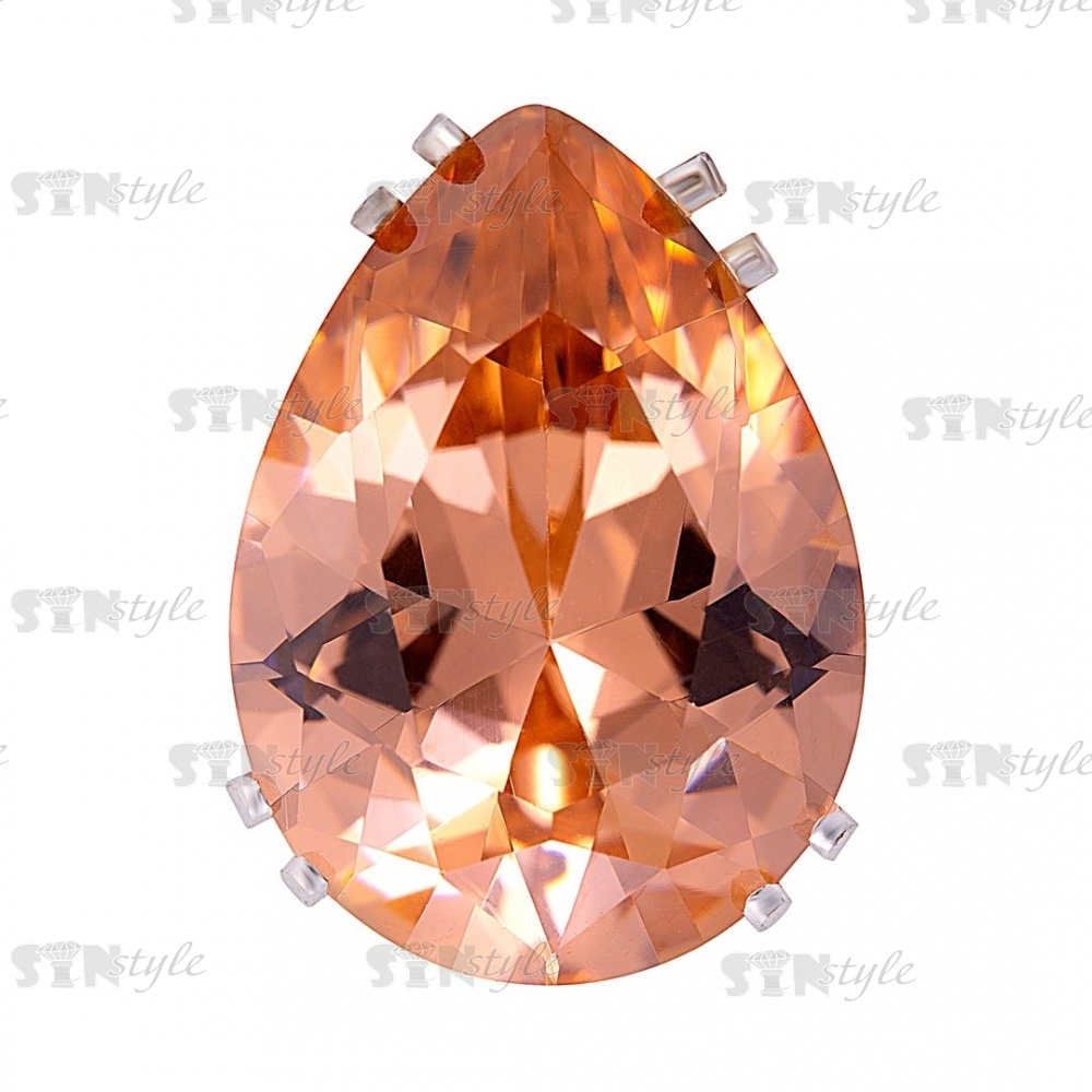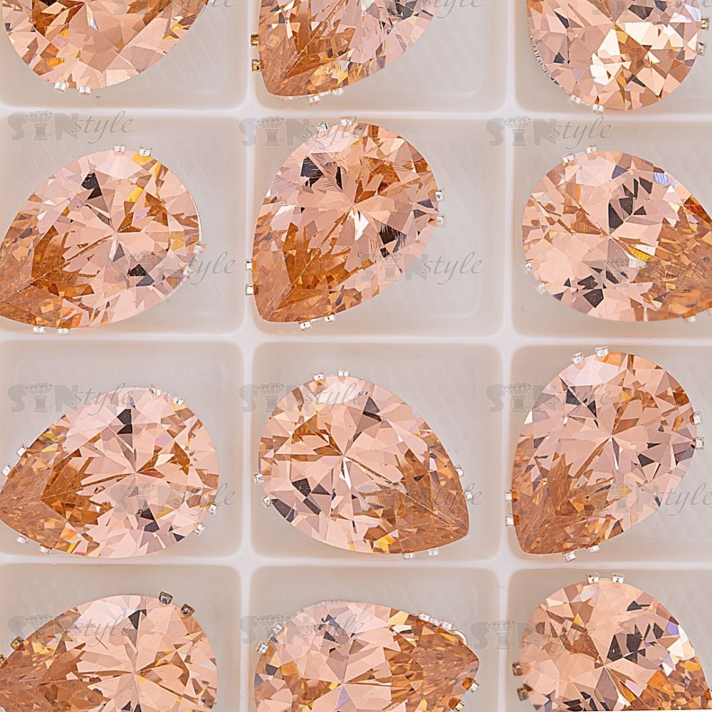 Стразы пришивные стеклянные в цапах, форма капля, цвет серебро+персик, размер 13*18мм