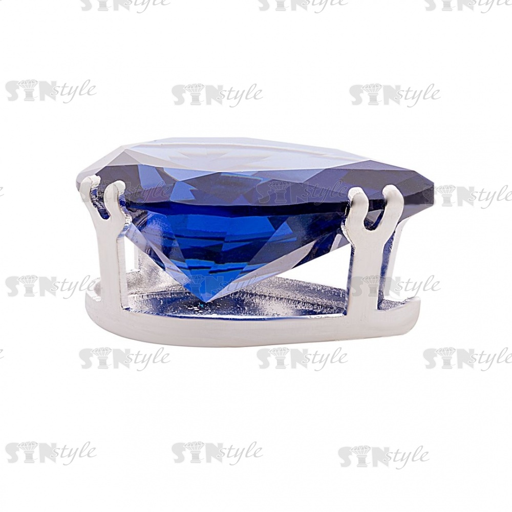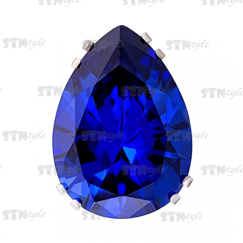 Стразы пришивные стеклянные в цапах, форма капля, цвет серебро+синий, размер 13*18мм