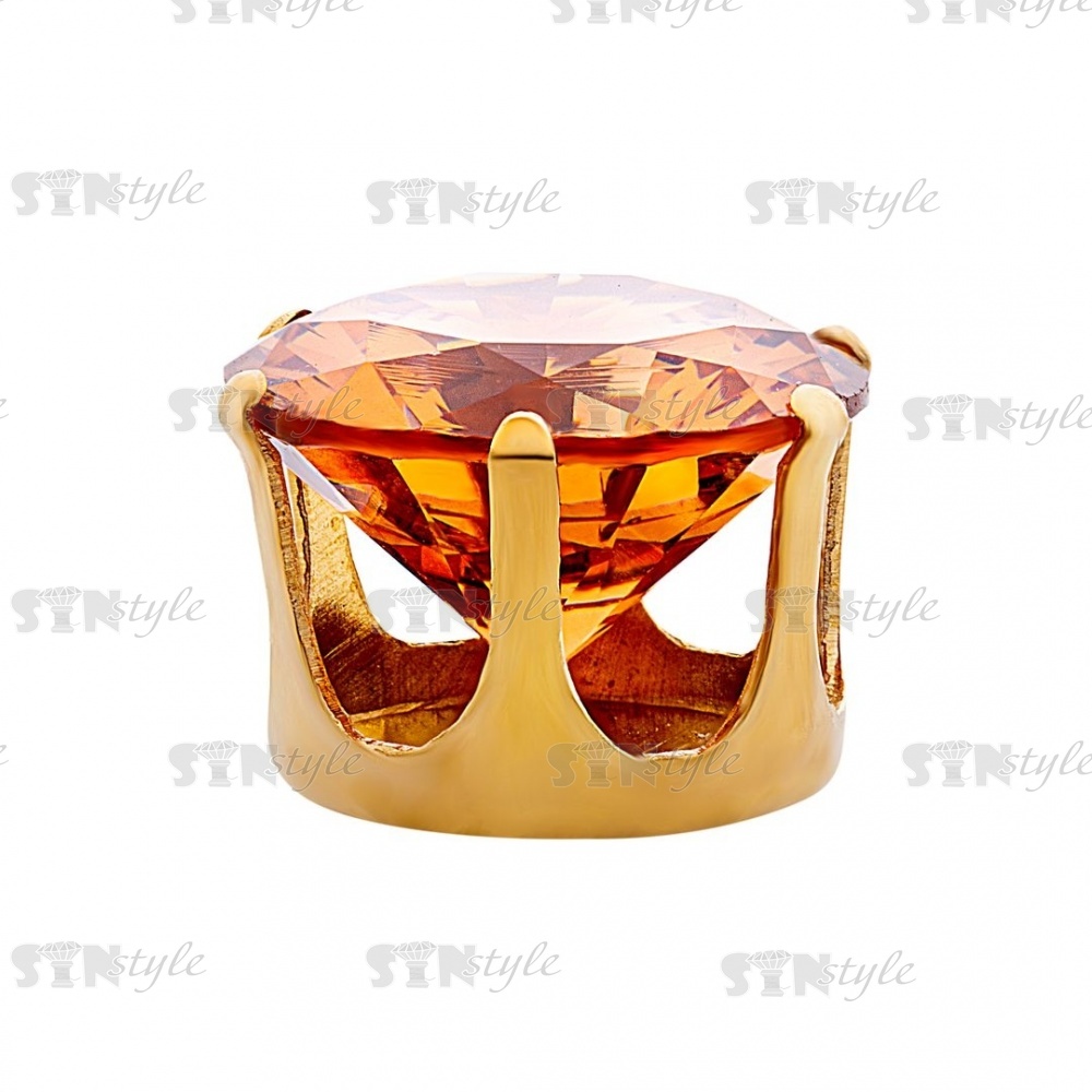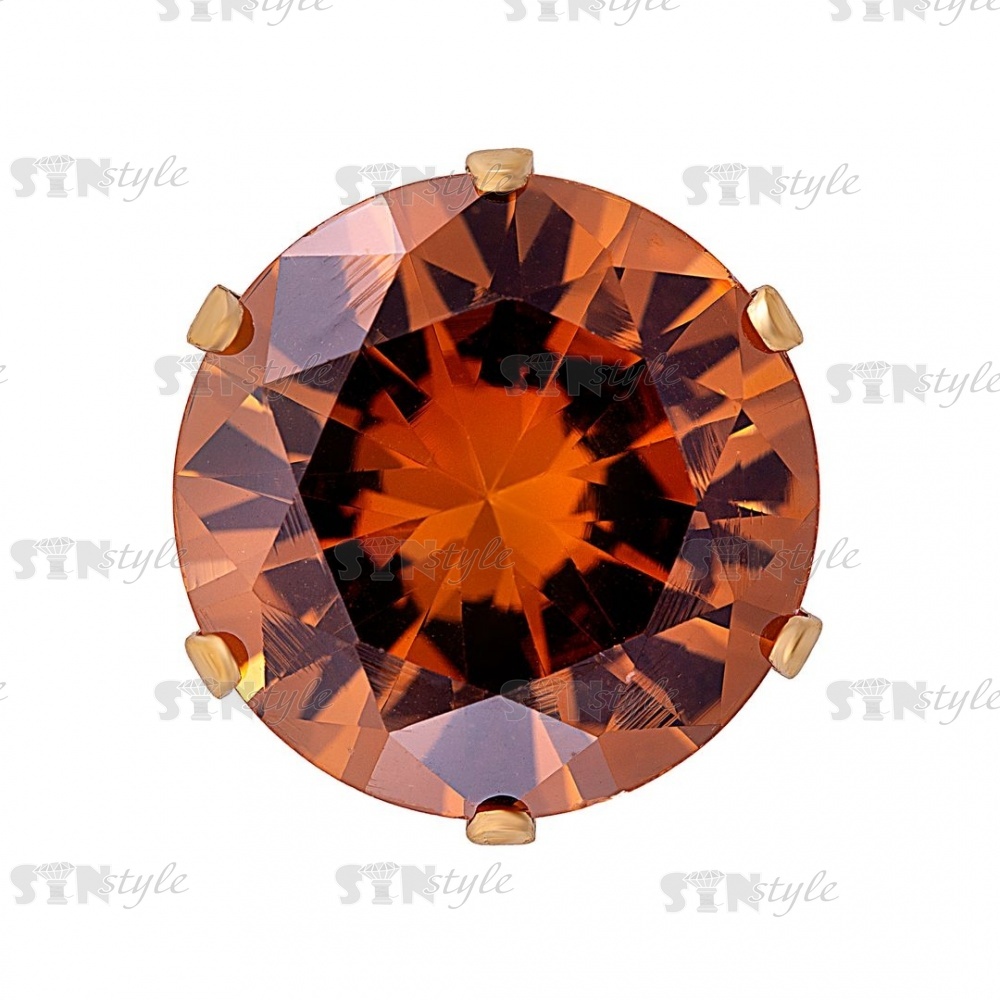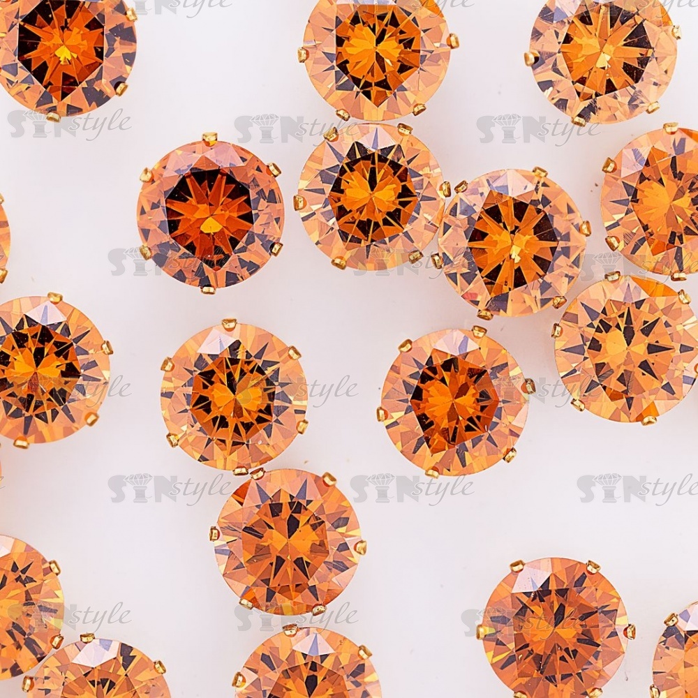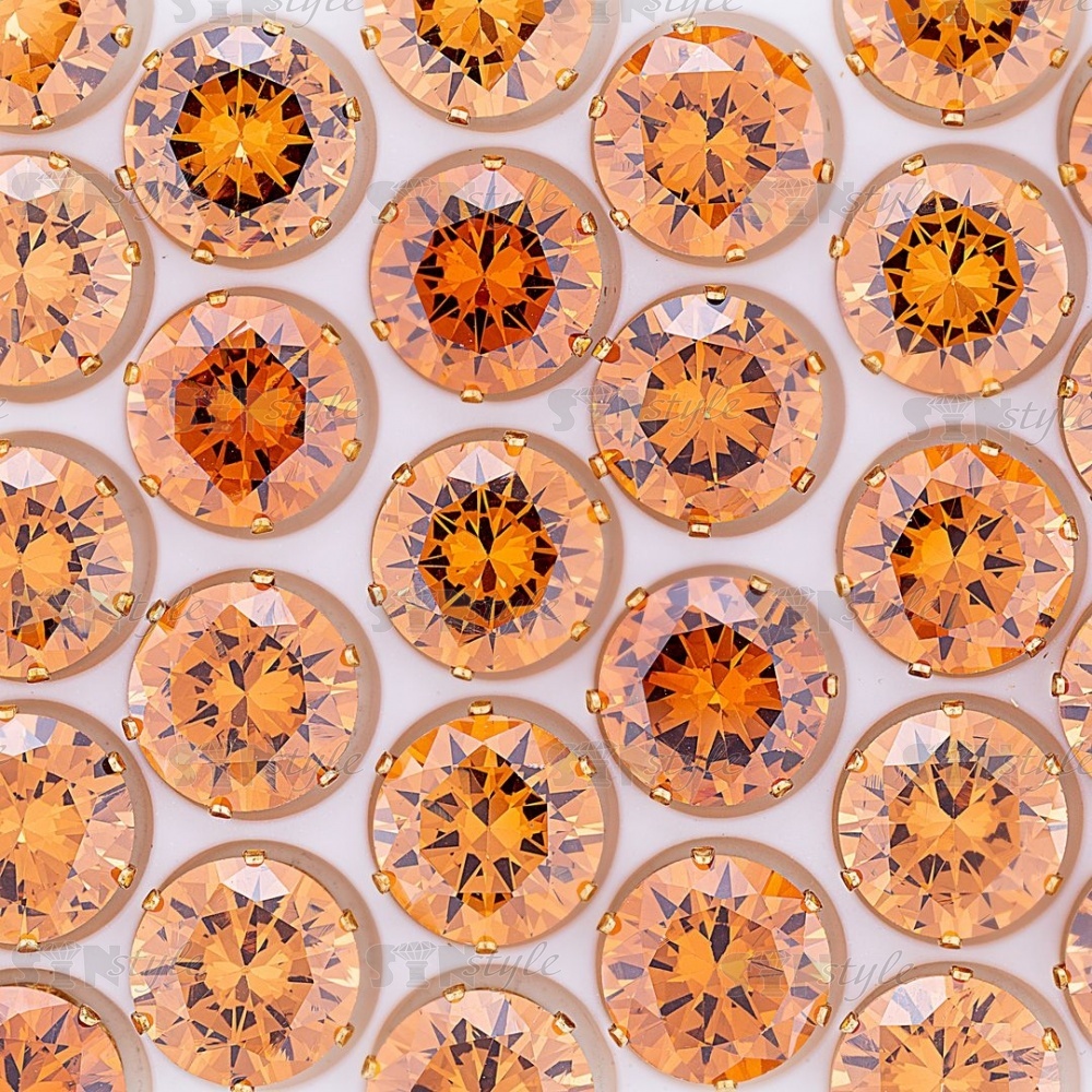 Стразы пришивные стеклянные в цапах, форма круг, цвет золото+персик, диаметр 12 мм