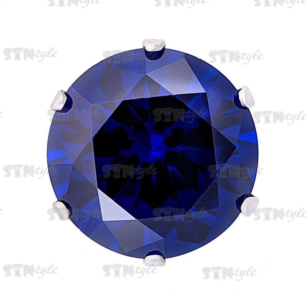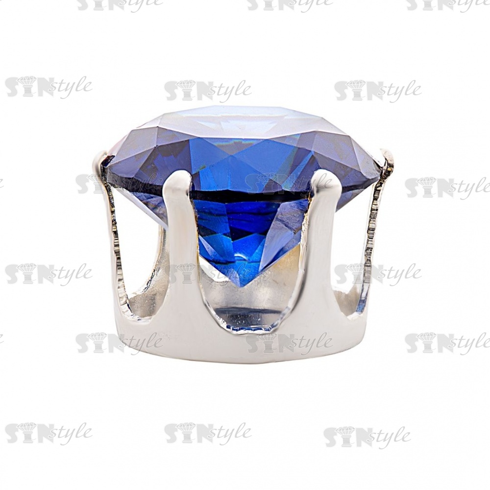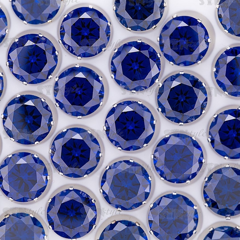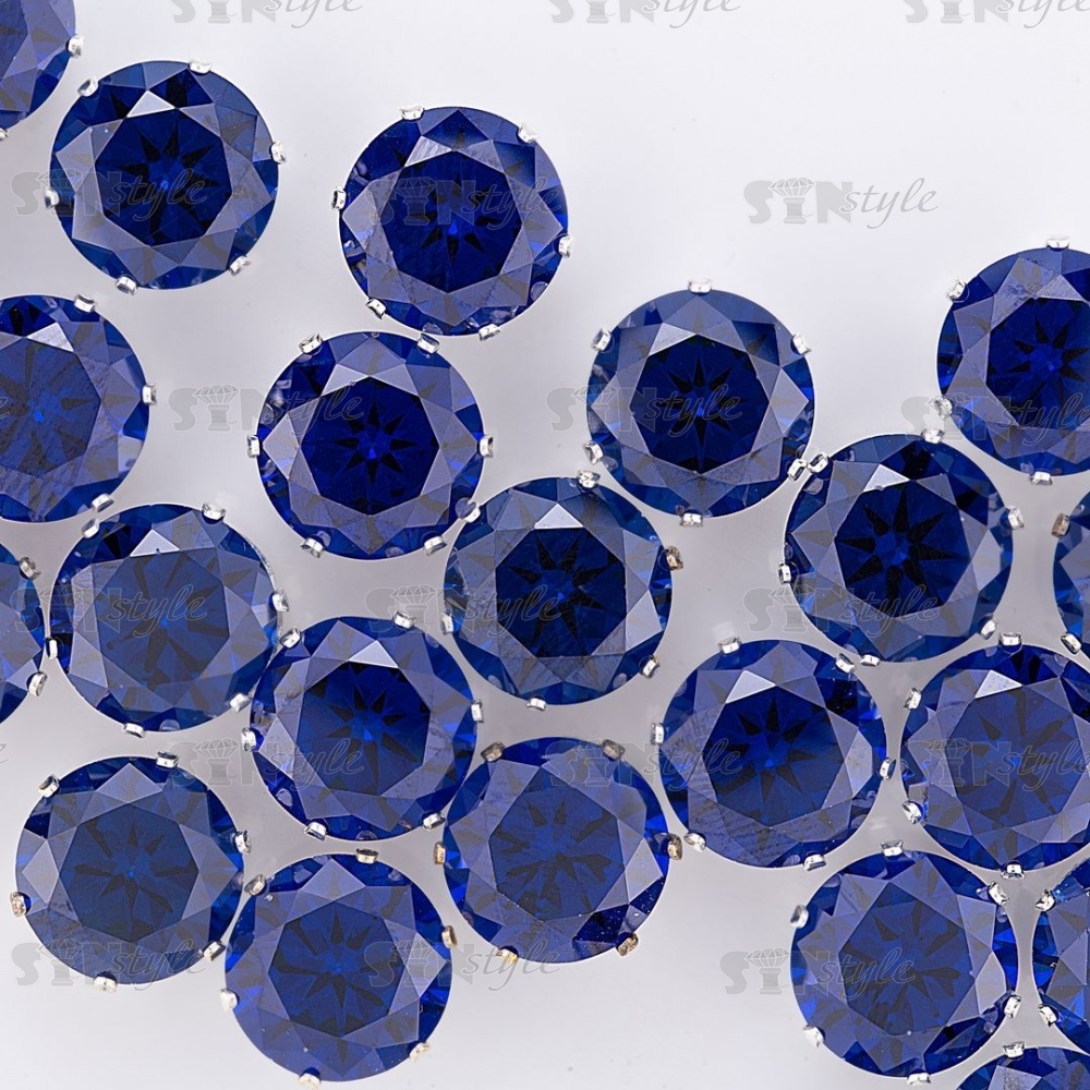 Стразы пришивные стеклянные в цапах, форма круг, цвет серебро+синий, диаметр 12 мм