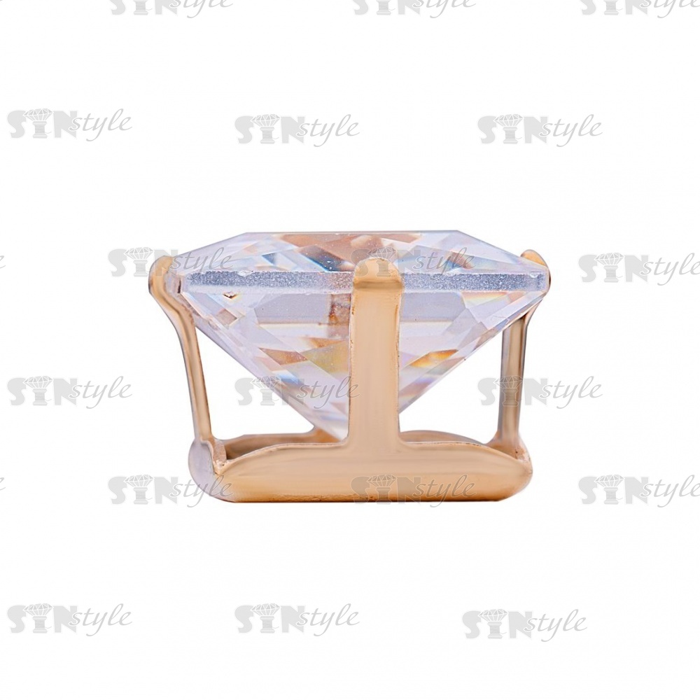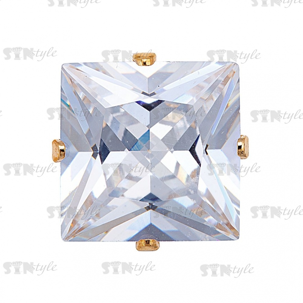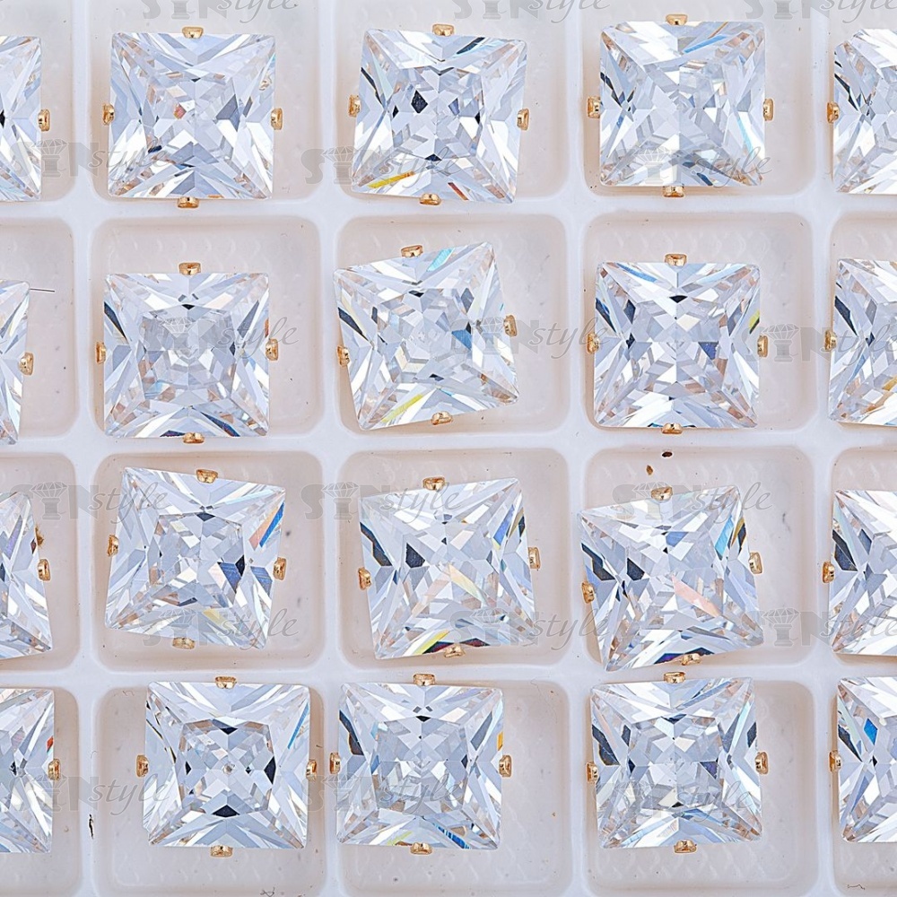 Стразы пришивные стеклянные в цапах, форма квадрат, цвет золото+белый прозрачный, размер 10*10 мм
