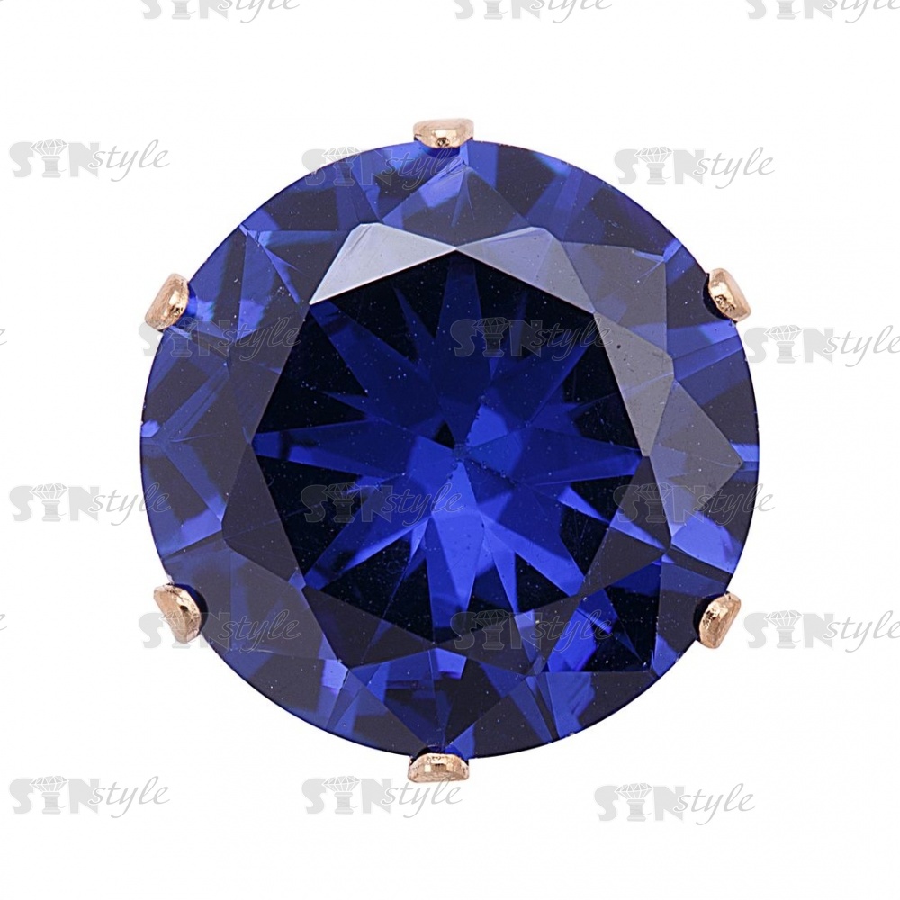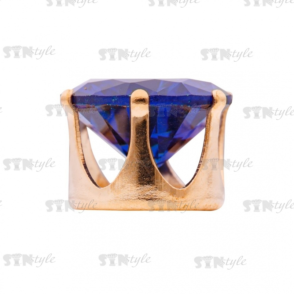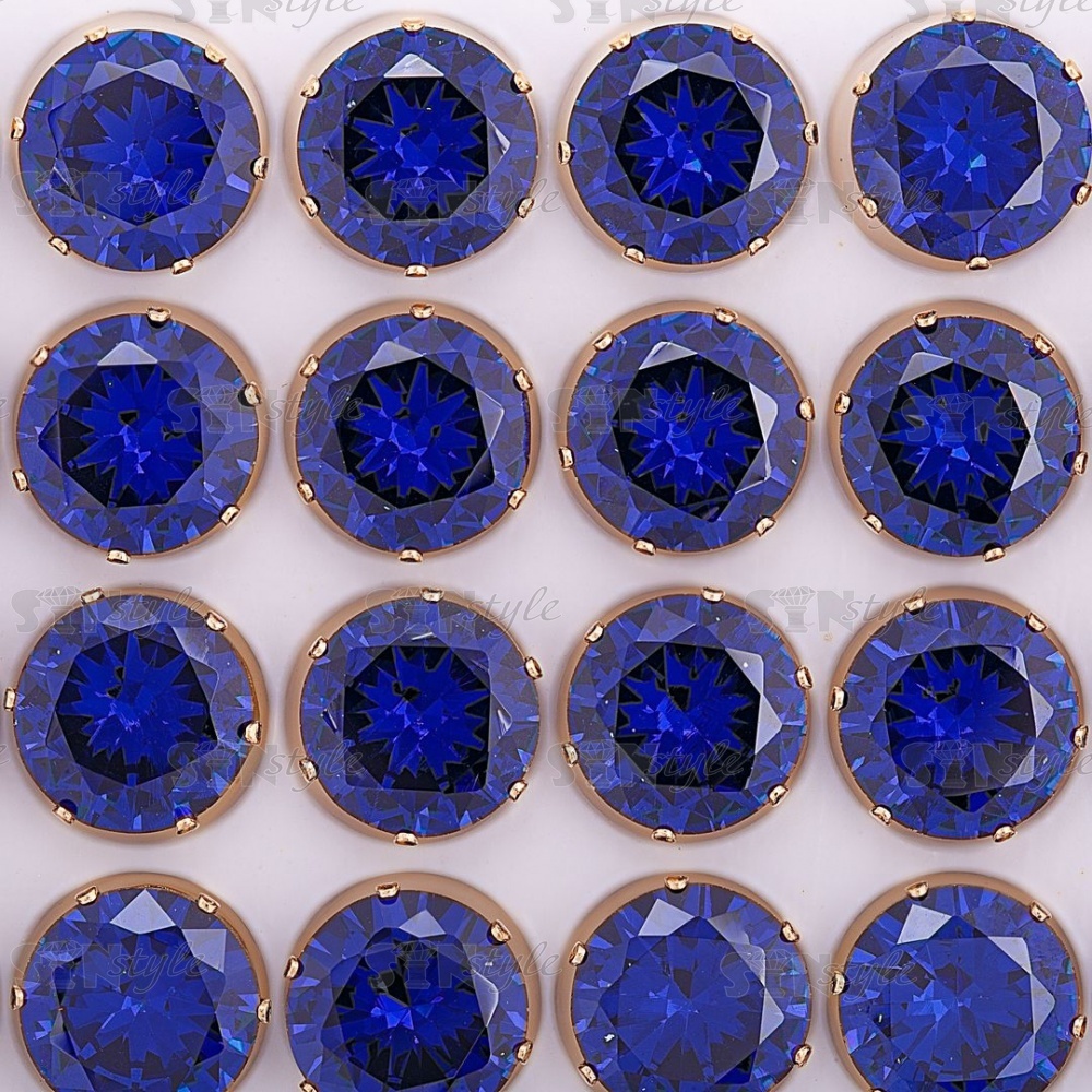 Стразы пришивные стеклянные в цапах, форма круг, цвет золото+синий, диаметр 12 мм