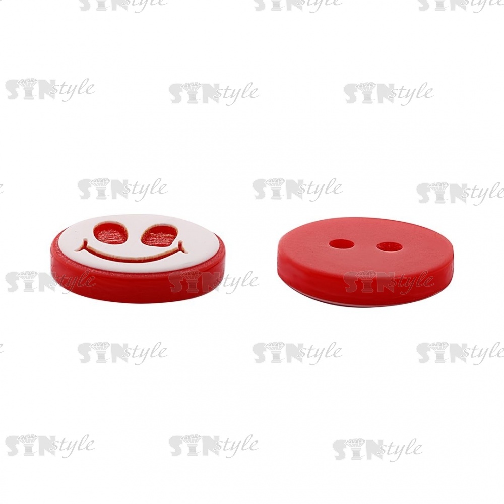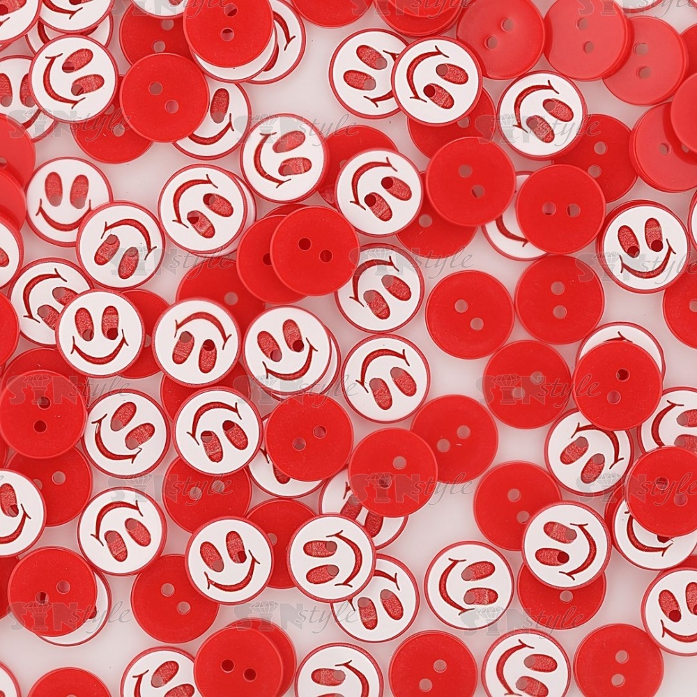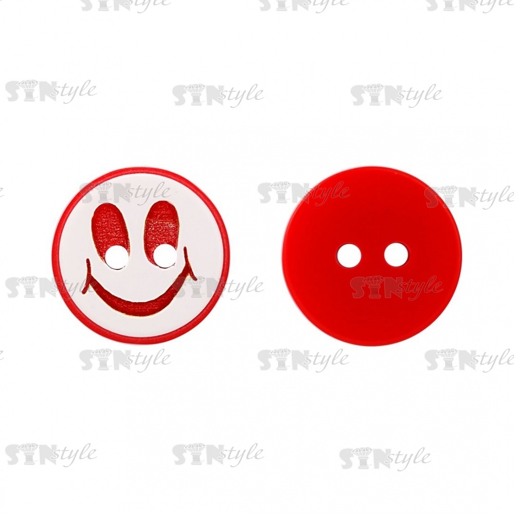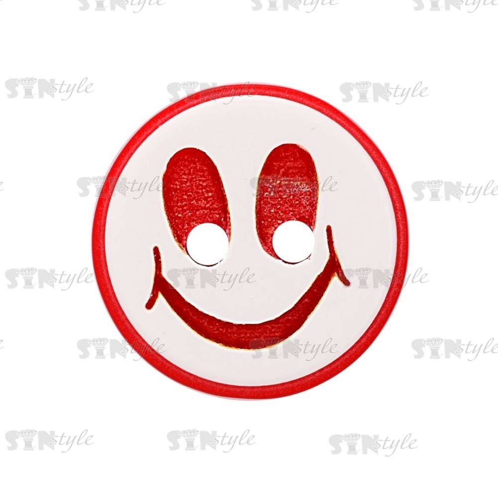 Пуговица пластиковая на два прокола "Смайлик", размер 20L, цвет красный