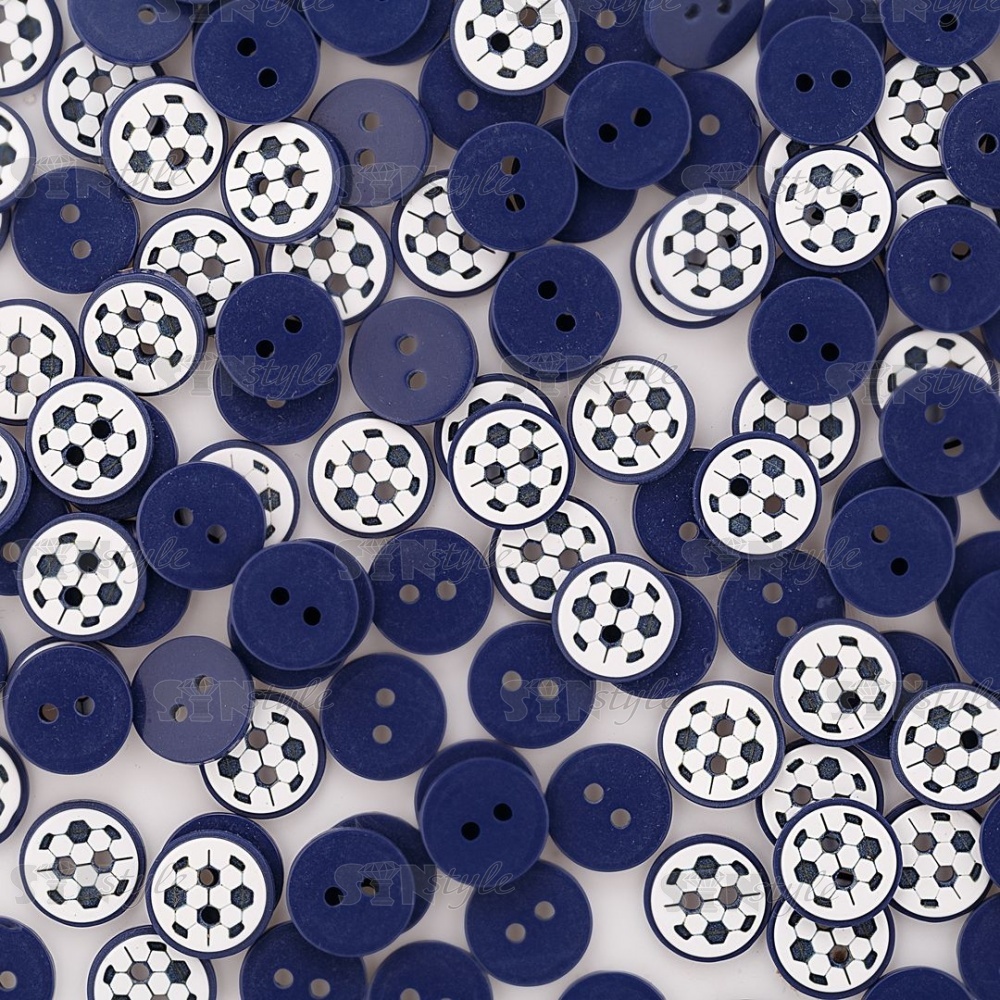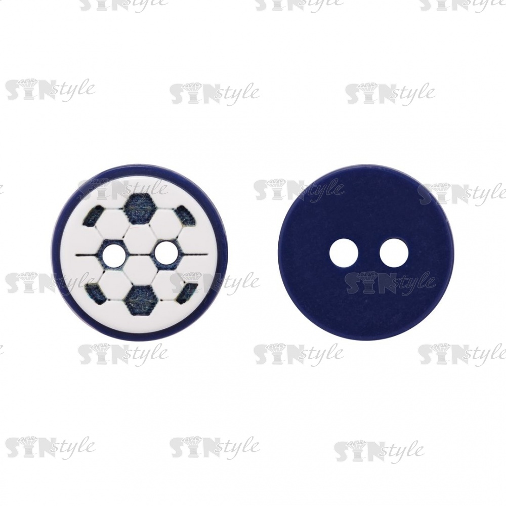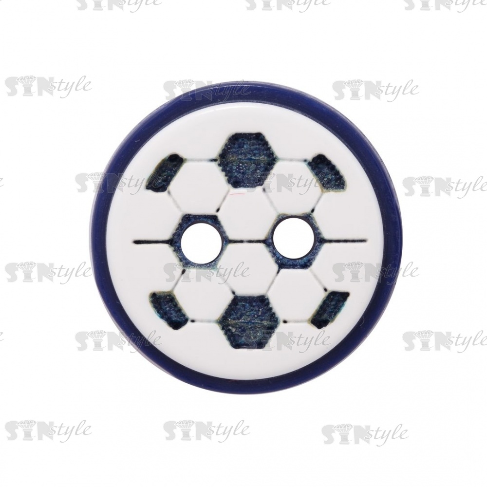 Пуговица пластиковая на два прокола "Футбол", размер 20L, цвет белый/синий