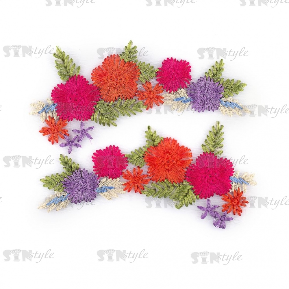 Вышитая аппликация с цветами, способна стать ярким элементом декора и придать любому предмету вашего гардероба нарядный и праздничный вид, так же может быть использована в пошиве сценических костюмов.