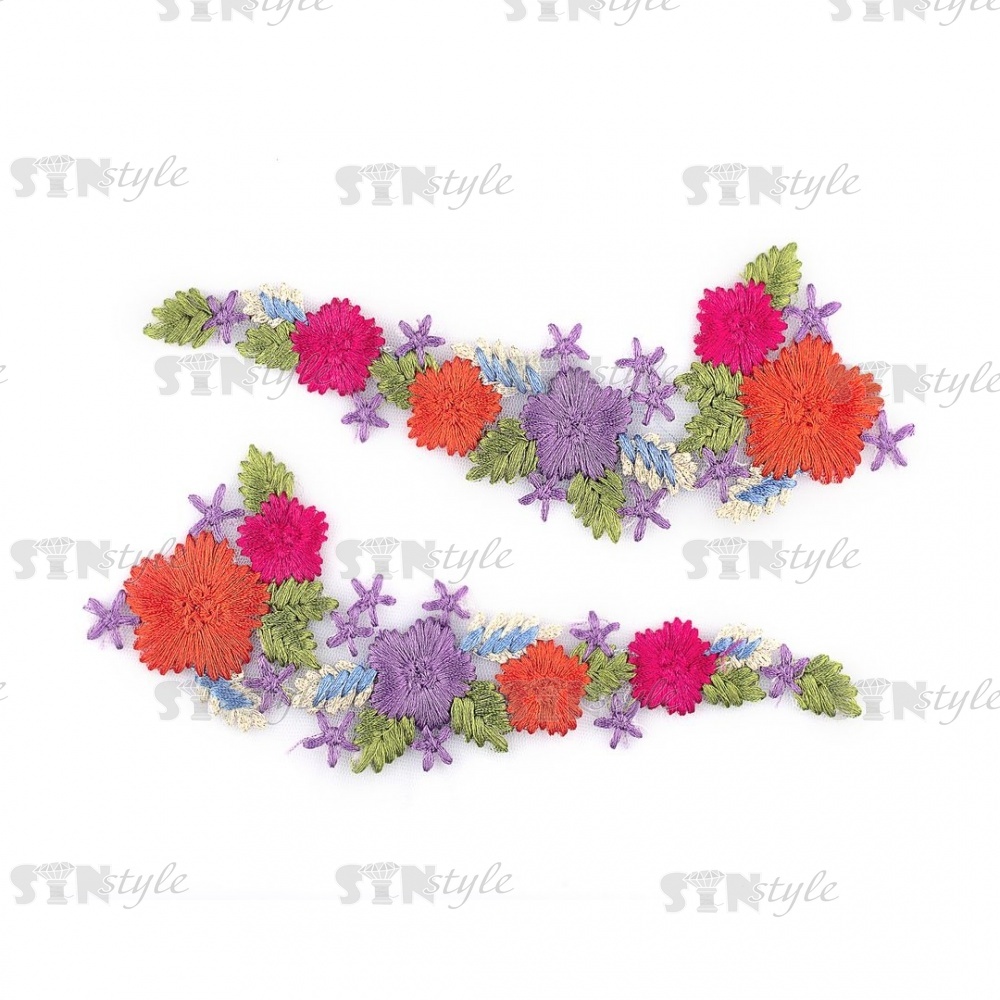 Вышитая аппликация с цветами, способна стать ярким элементом декора и придать любому предмету вашего гардероба нарядный и праздничный вид, так же может быть использована в пошиве сценических костюмов.