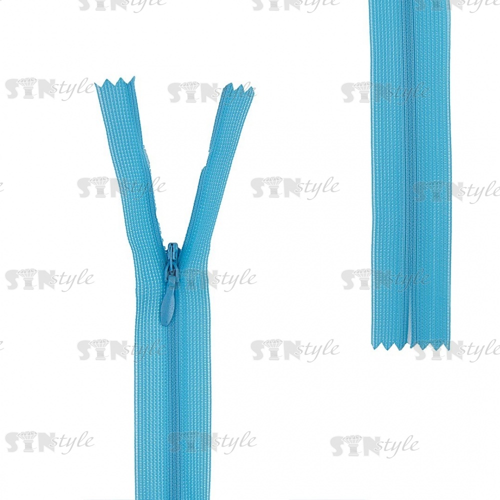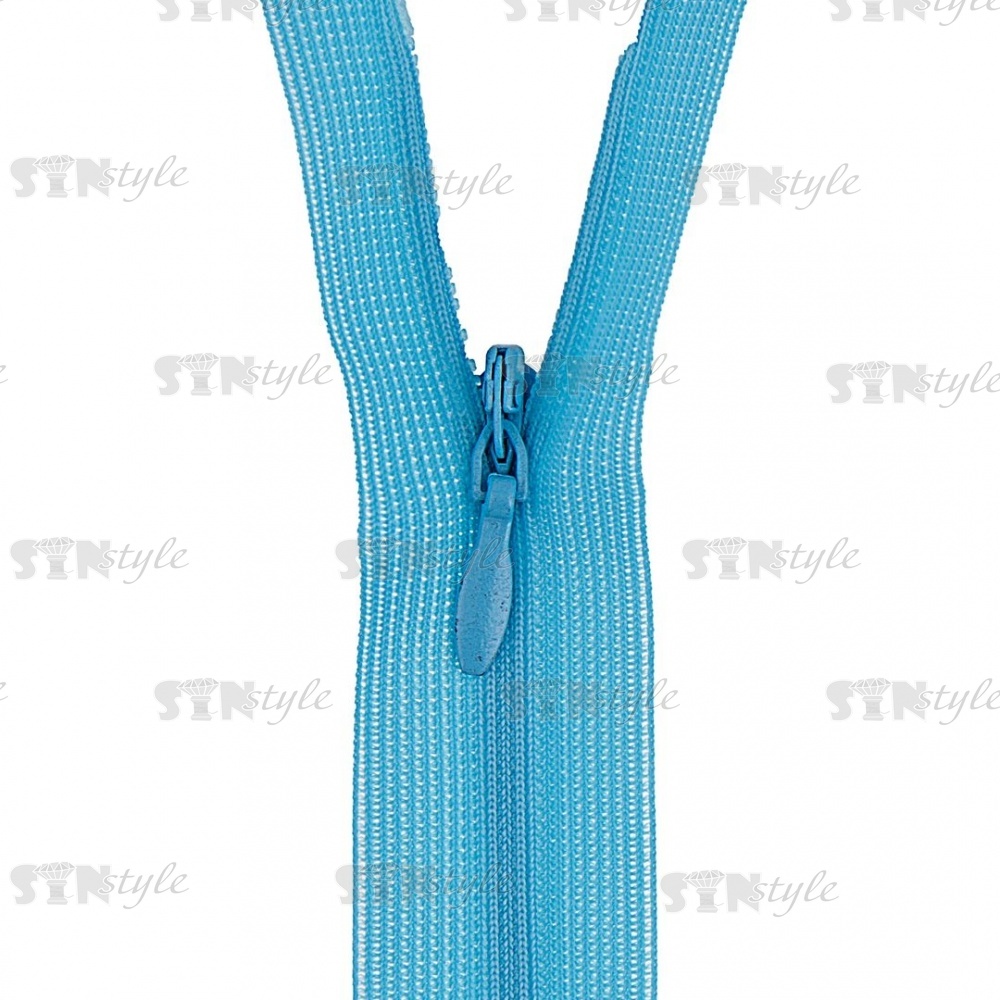 Молния спираль, тип 3, потайная, неразъемная, основа капрон, длина 50 см, цвет 905 (светлый аквамарин), бегунок цвета основы