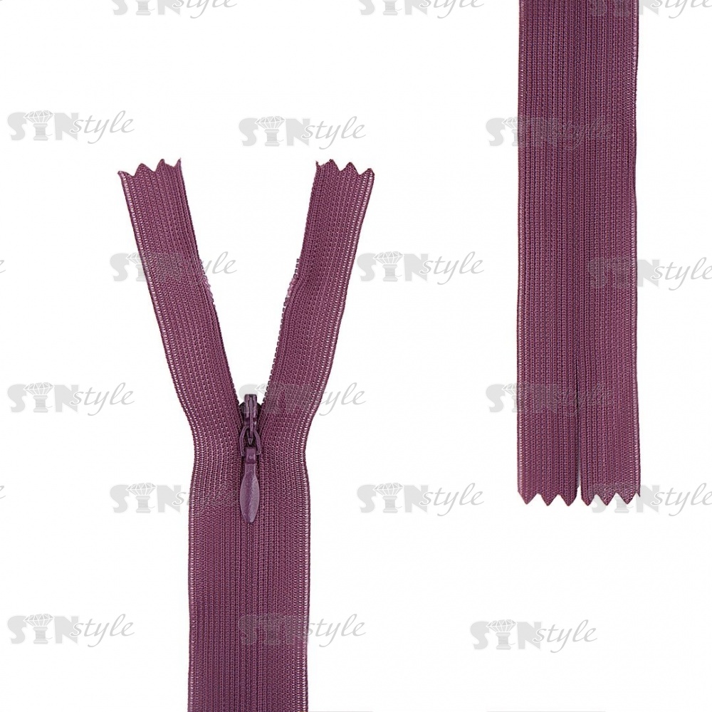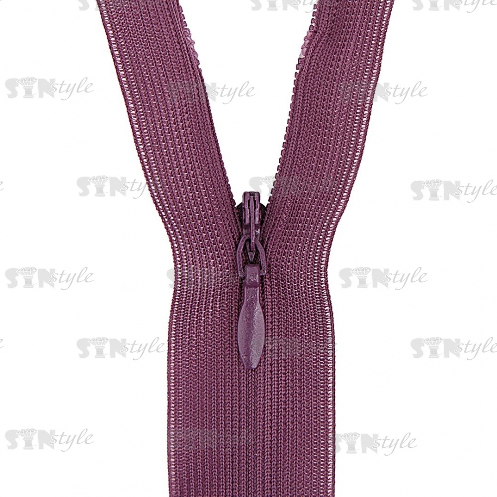 Молния спираль, тип 3, потайная, неразъемная, основа капрон, длина 50 см, цвет 863 (темно-фиолетовый), бегунок цвета основы