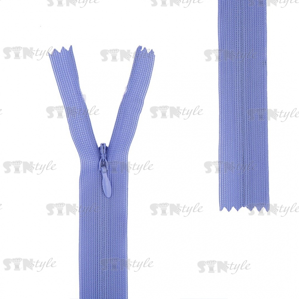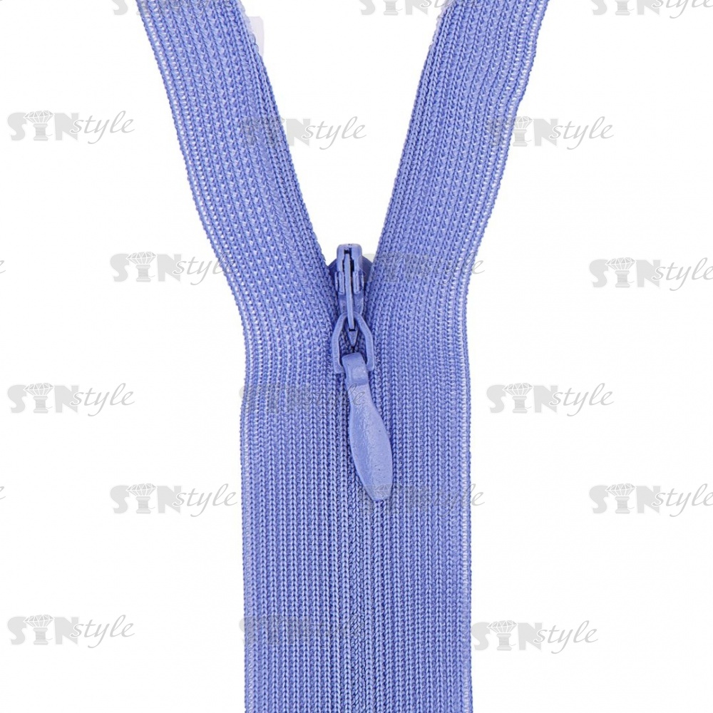 Молния спираль, тип 3, потайная, неразъемная, основа капрон, длина 50 см, цвет 255 (сиренево-голубой), бегунок цвета основы
