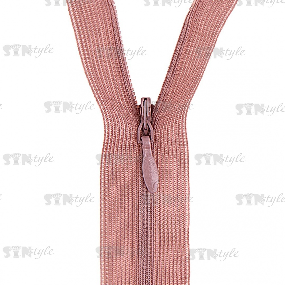 Молния спираль, тип 3, потайная, неразъемная, основа капрон, длина 50 см, цвет 221 (розово-бежевый), бегунок цвета основы