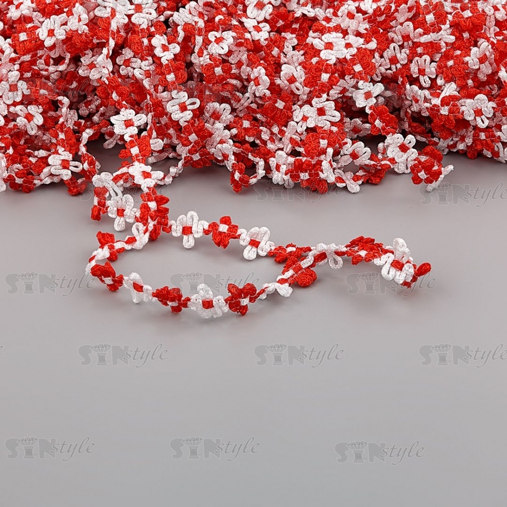 Тесьма отделочная вязаная, цвет красный (01), ширина 15 мм, намотка 50 ярд