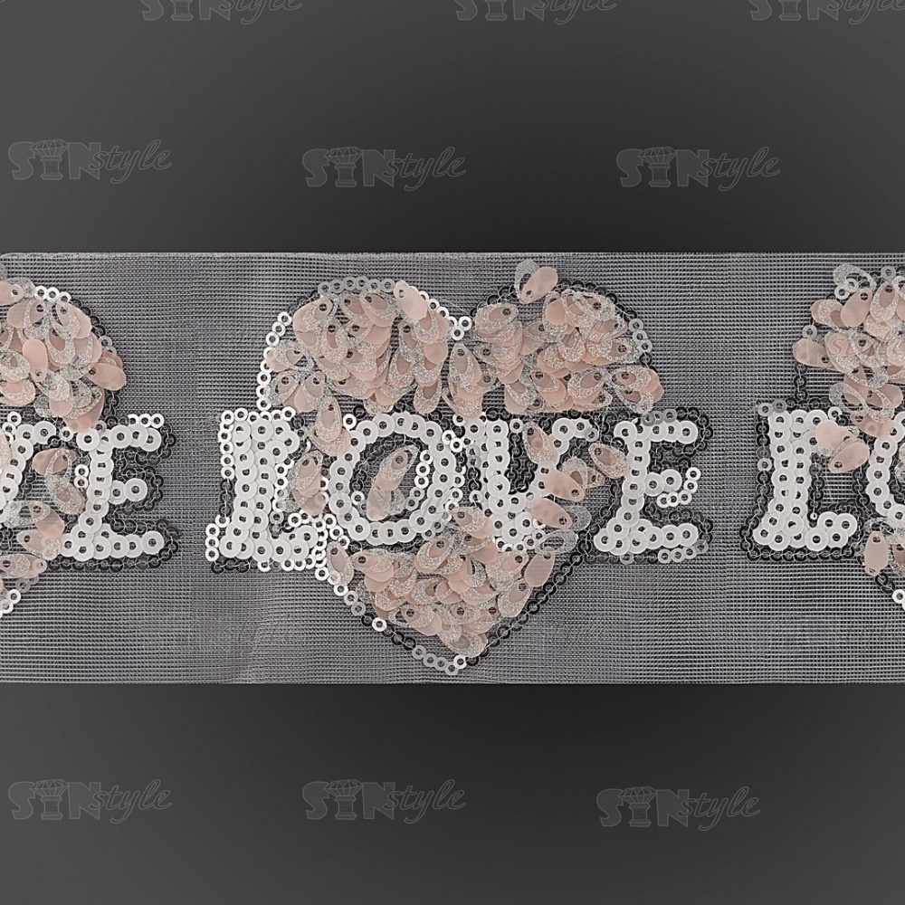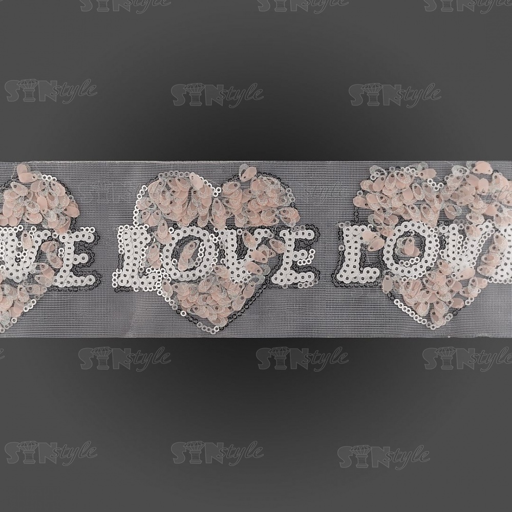 Аппликация на сетке из пайеток "Love", цвет персиковый, размер 100 х 80 мм, рулон 82 шт.
