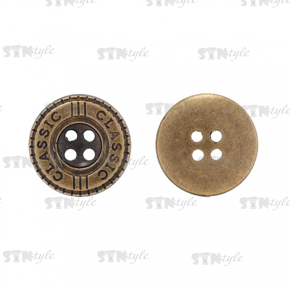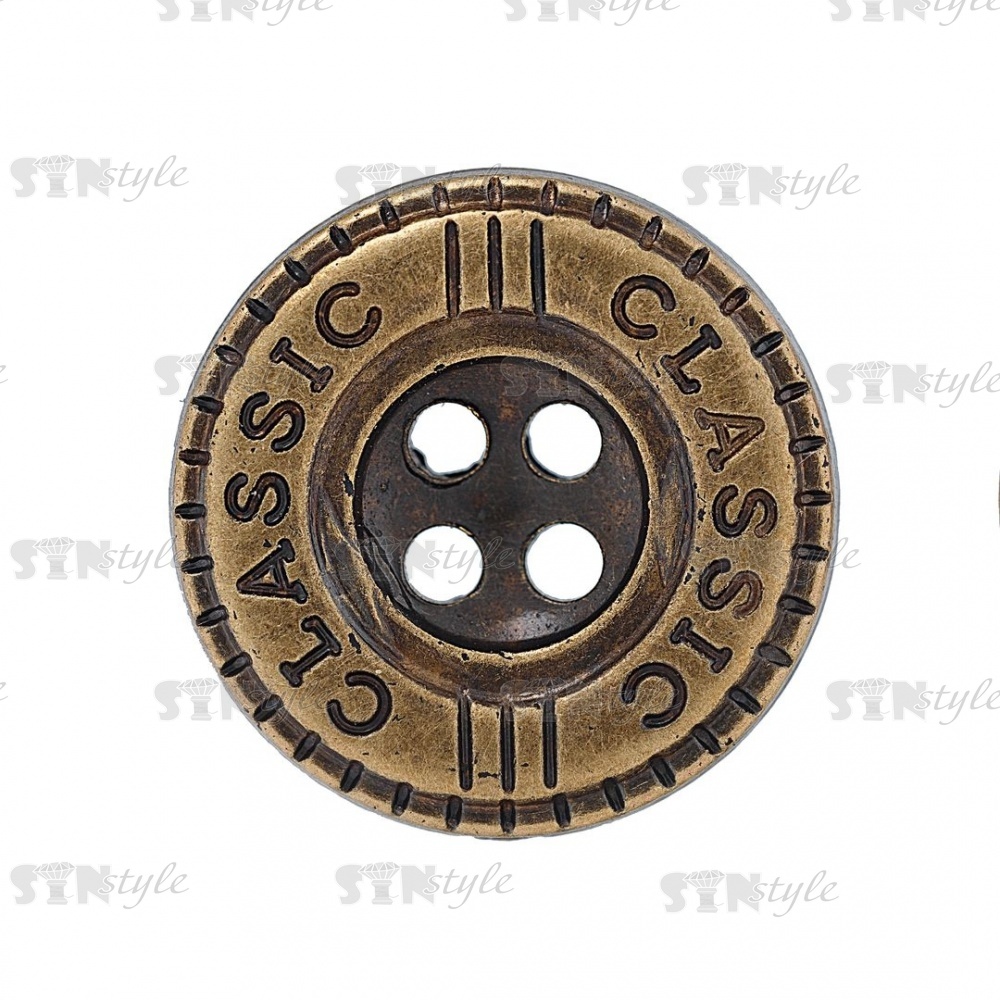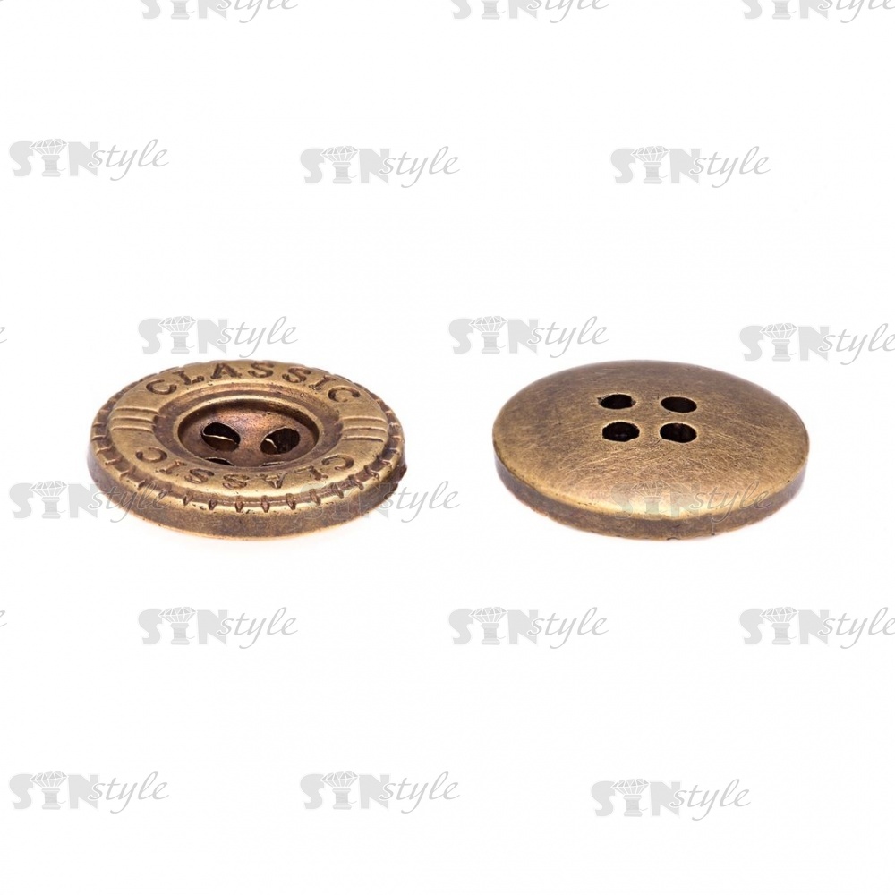Пуговица пластиковая на четыре прокола, бронзовая, 24L