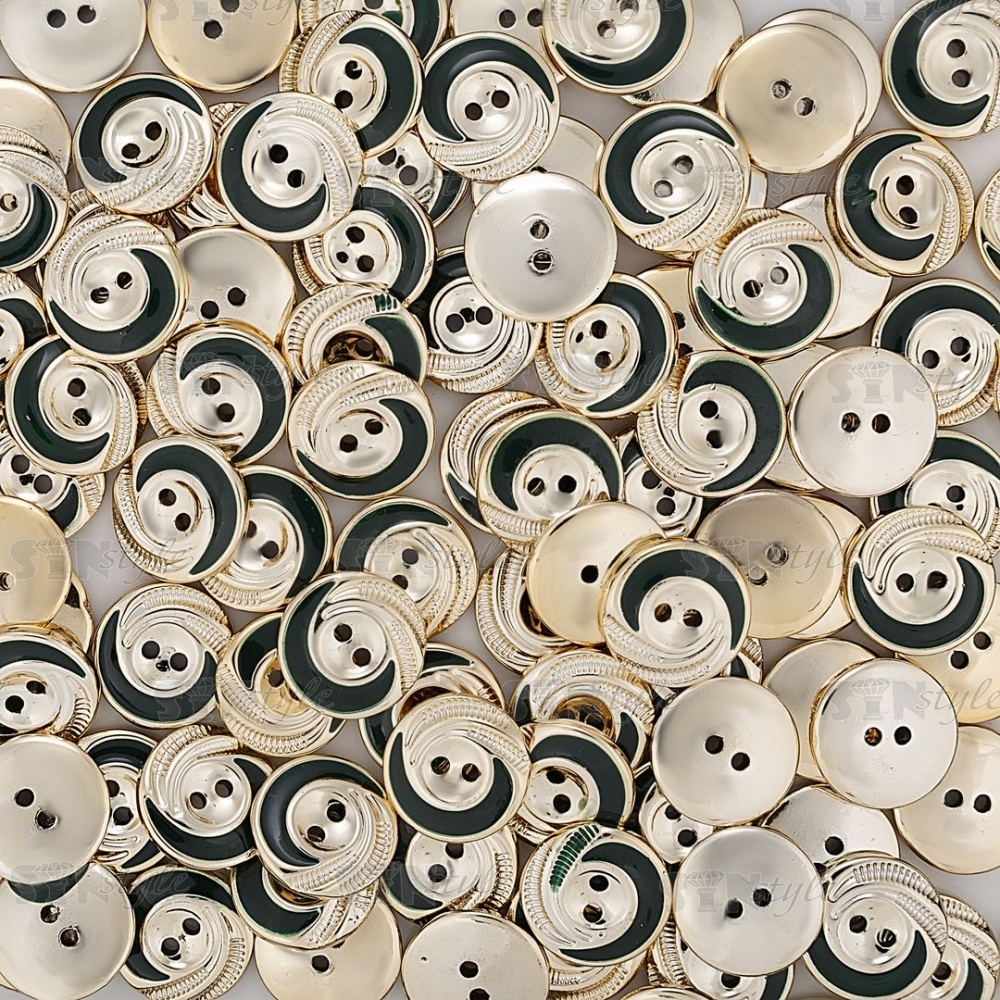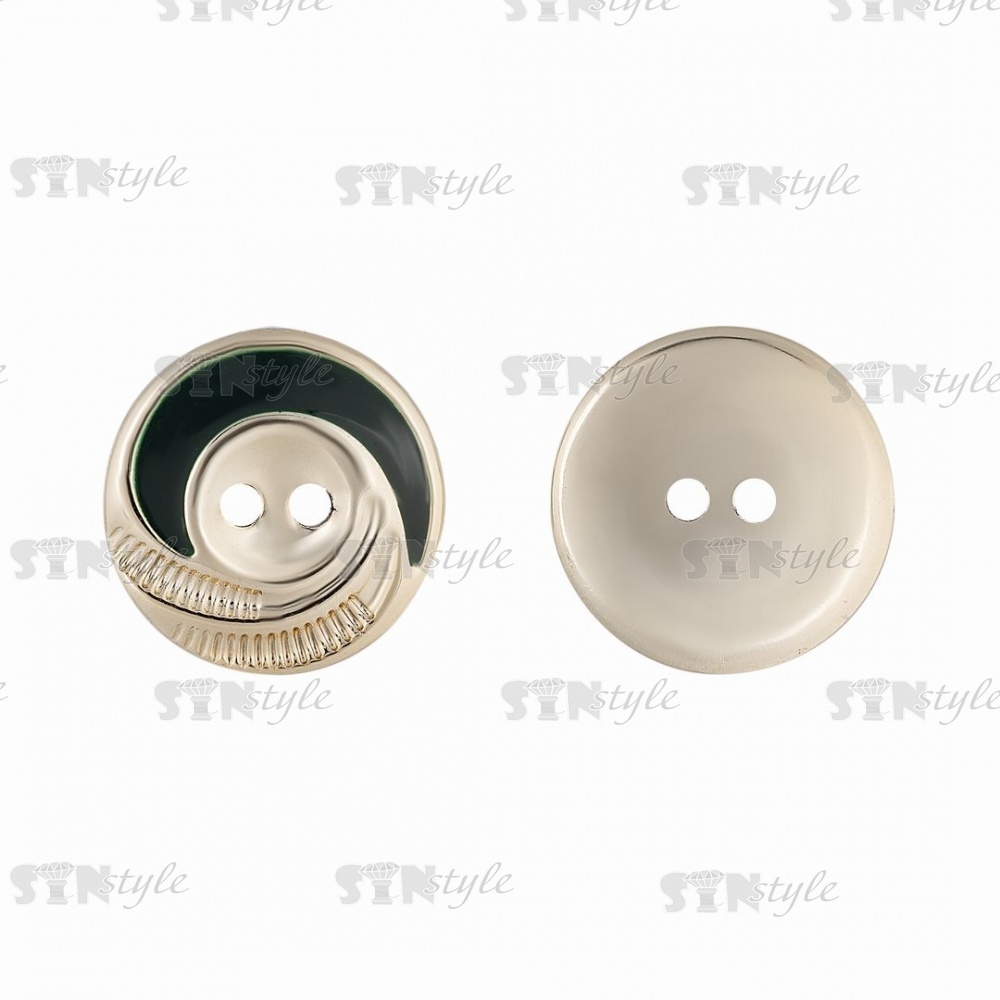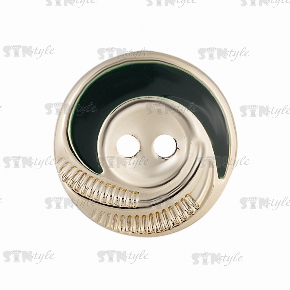 Пуговица пластиковая на два прокола, золотая с темно-зеленым, 28L