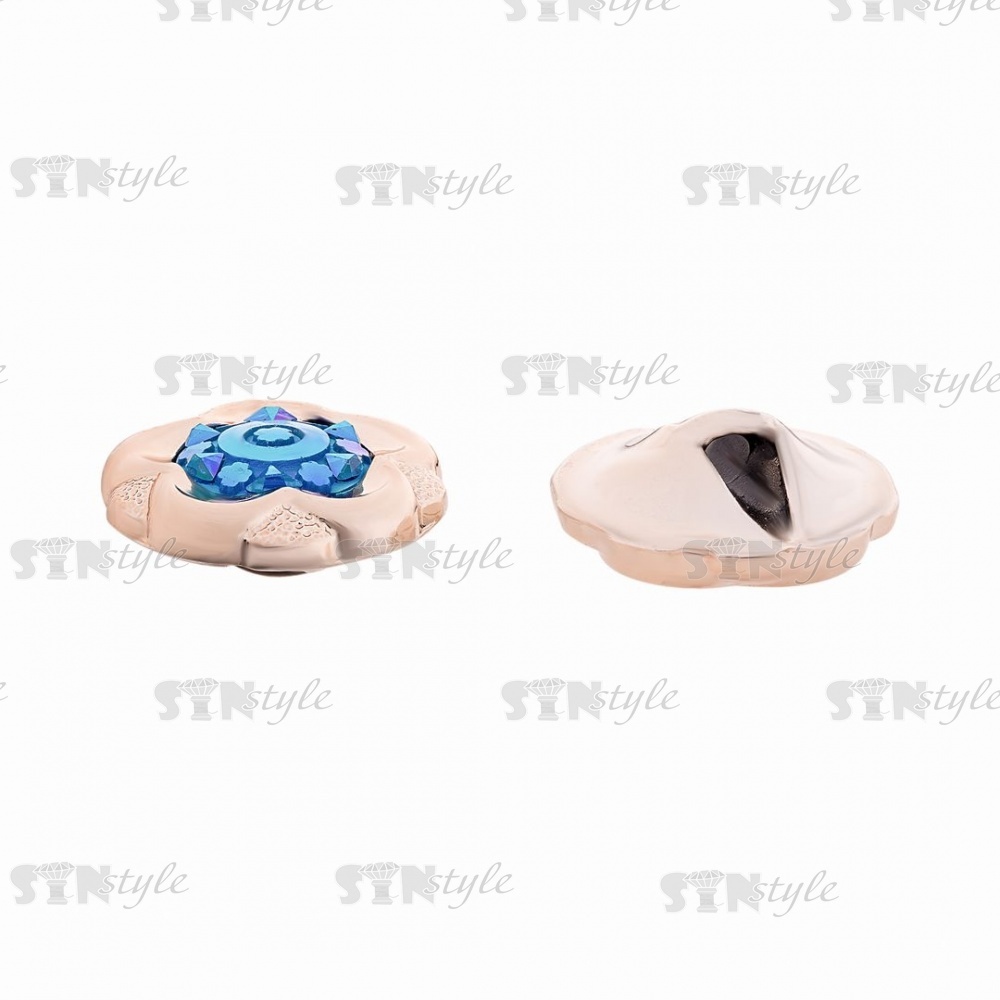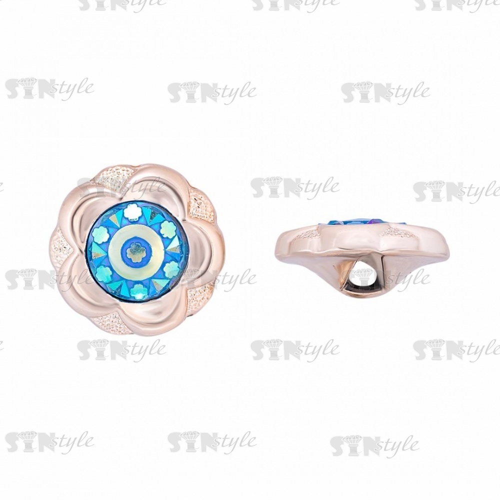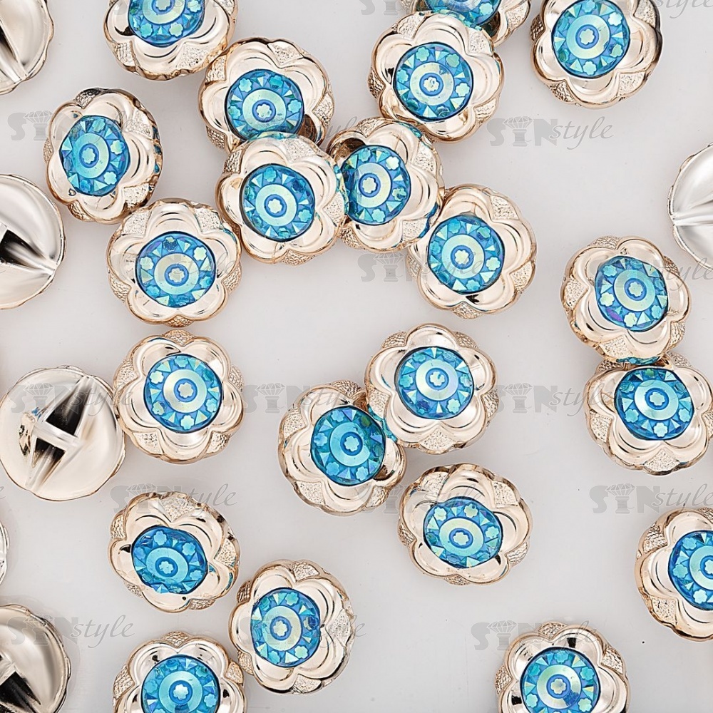 Пуговица пластиковая на ножке, в форме цветка, золотая основа с голубой радужной вставкой, 40L