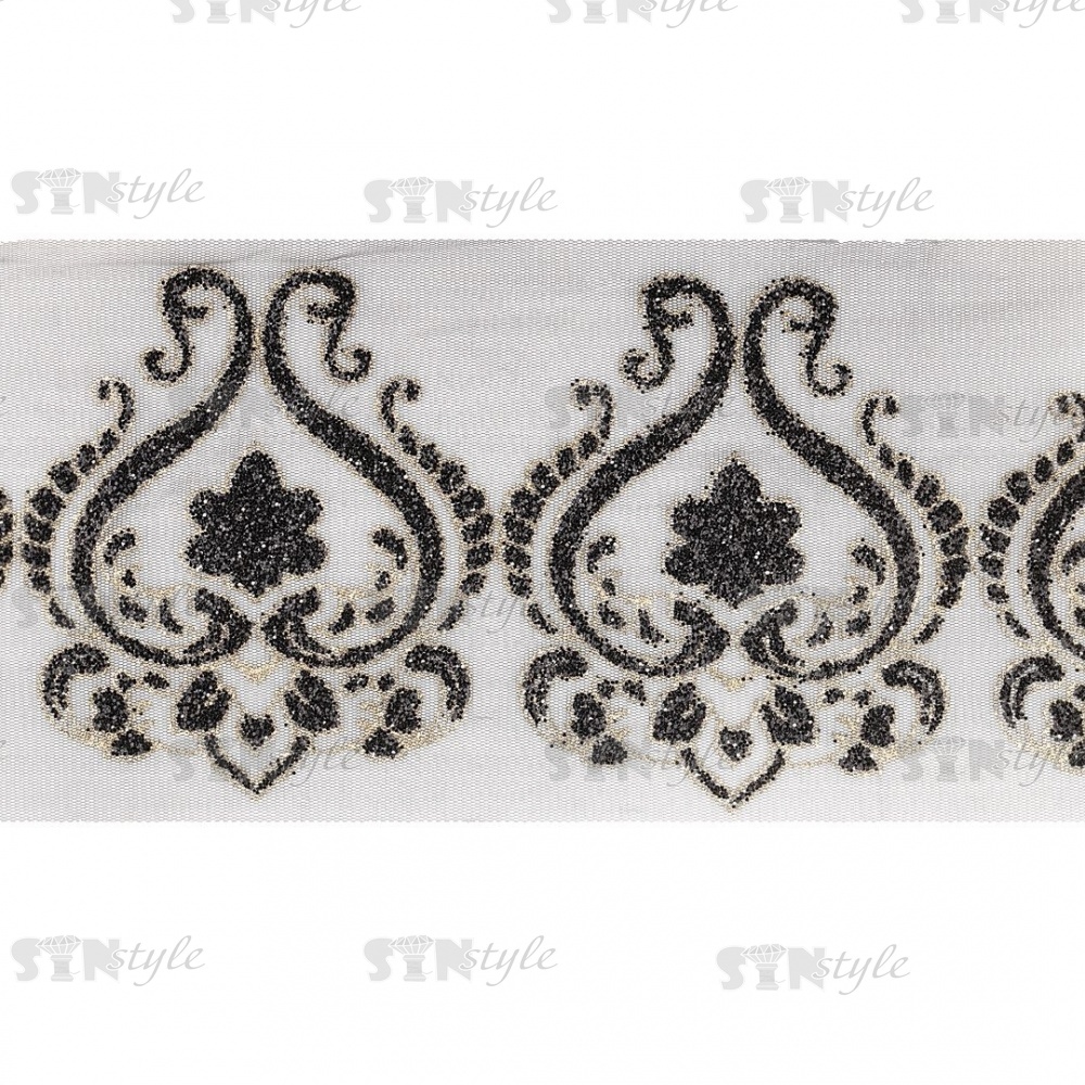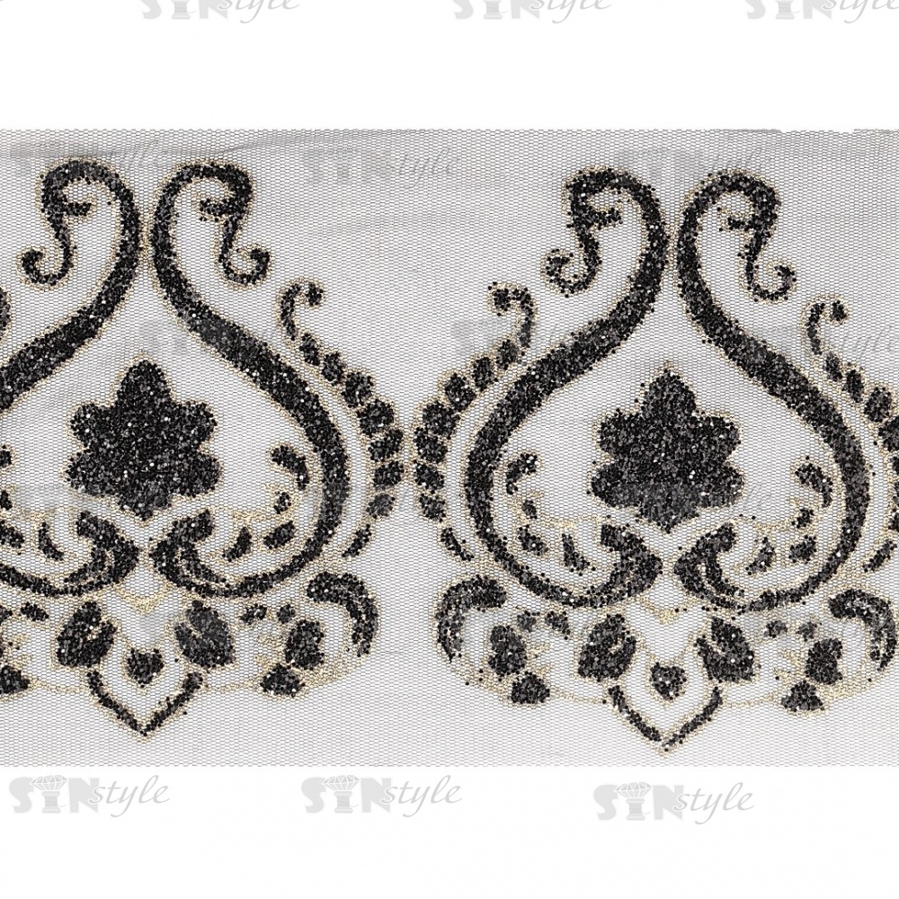 Кружево на сетке черного цвета с золотым и черным глиттером, ширина 170 мм, намотка 15 ярдов