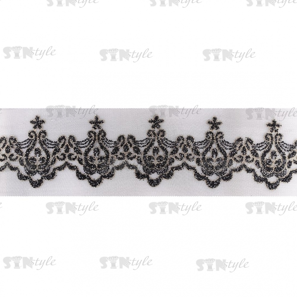 Кружево на сетке представляет собой кружевное полотно, основа которого сетка или фатин. Применяется для декоративной отделки лёгкой женской одежды, домашнего текстиля, аксессуаров, так же и для скрапбукинга, изготовления кукол, свадебных украшений .