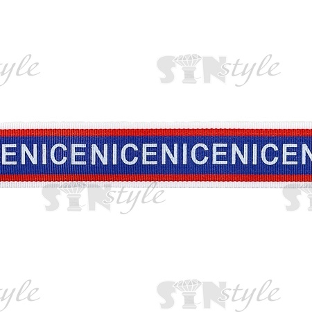 Лента репосвая, с принтом "NICE", ширина 30 мм, цвет белый+красный+синий, намотка 50 ярдов