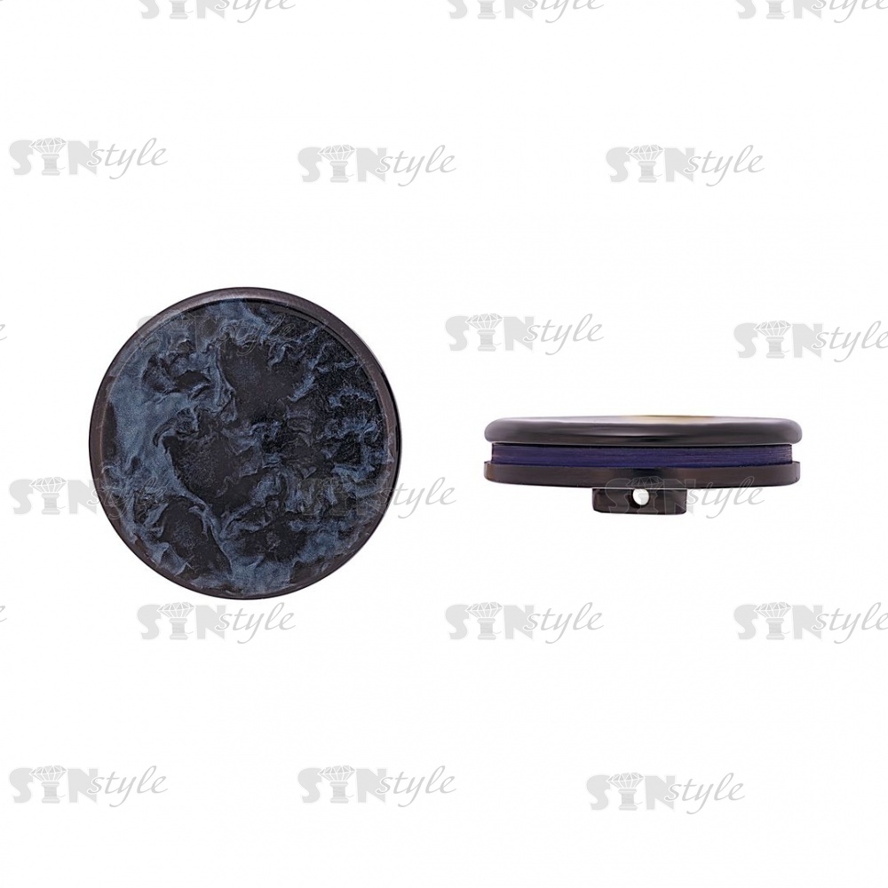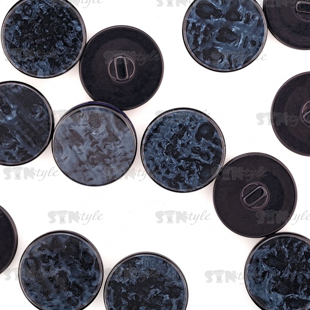 Пуговица пластиковая на ножке, круглая, темно-синяя, окрашена под мрамор, 54L