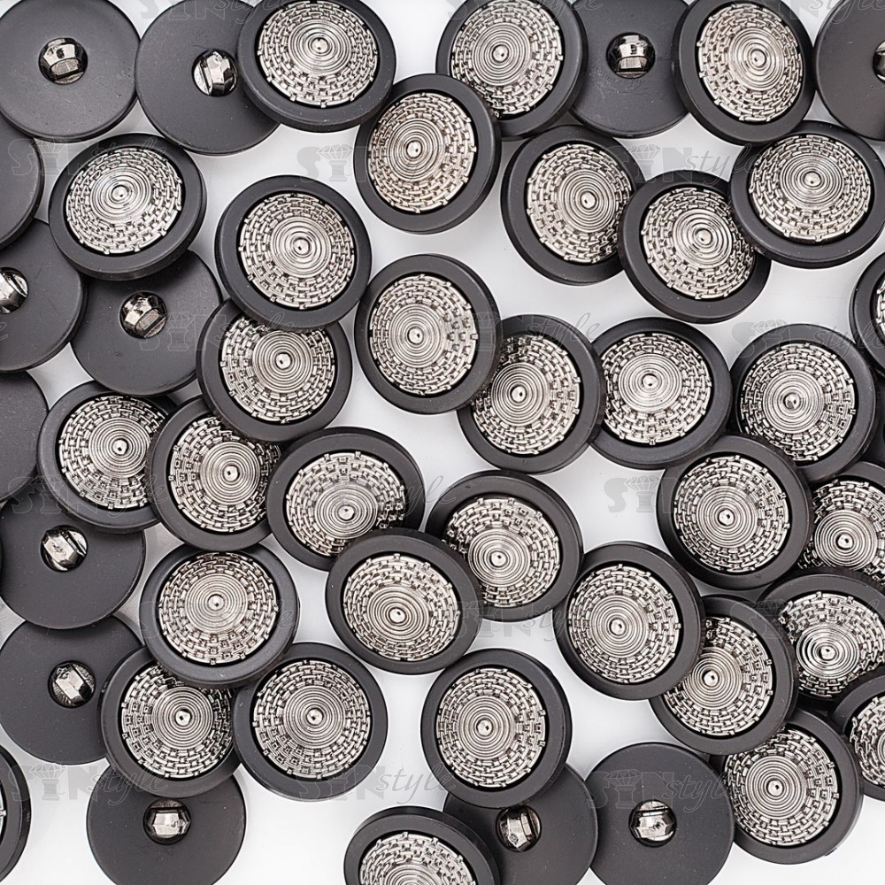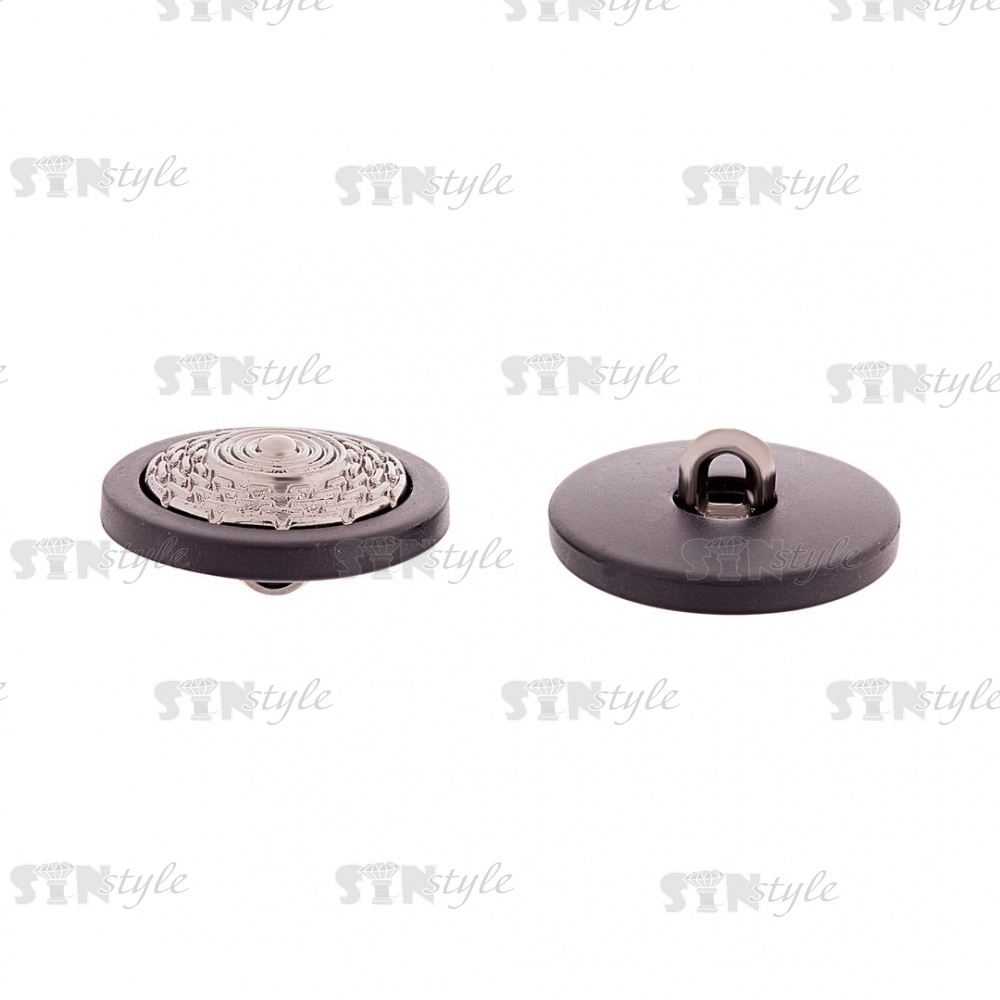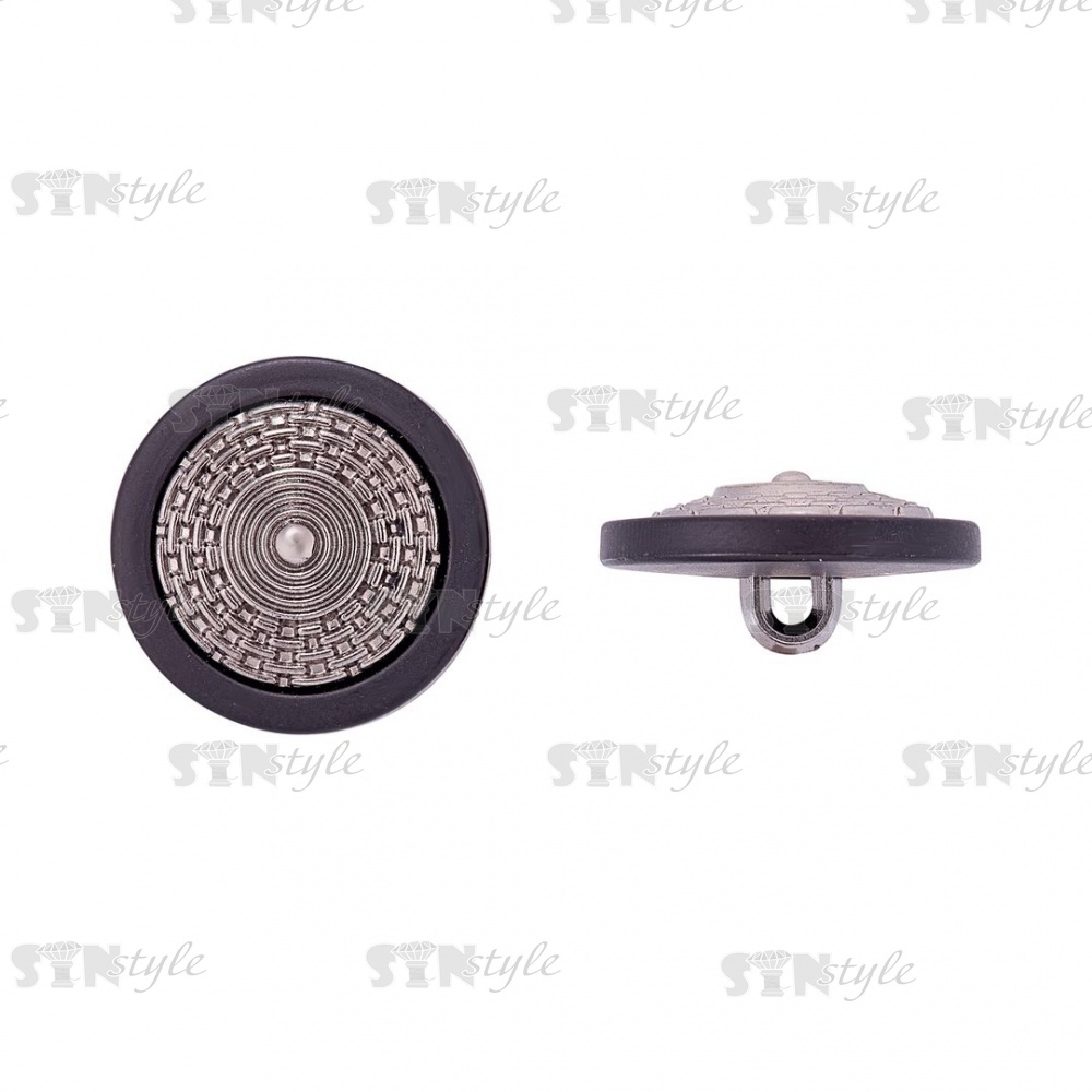 Пуговица пластиковая 36L, цвет темный никель+черный