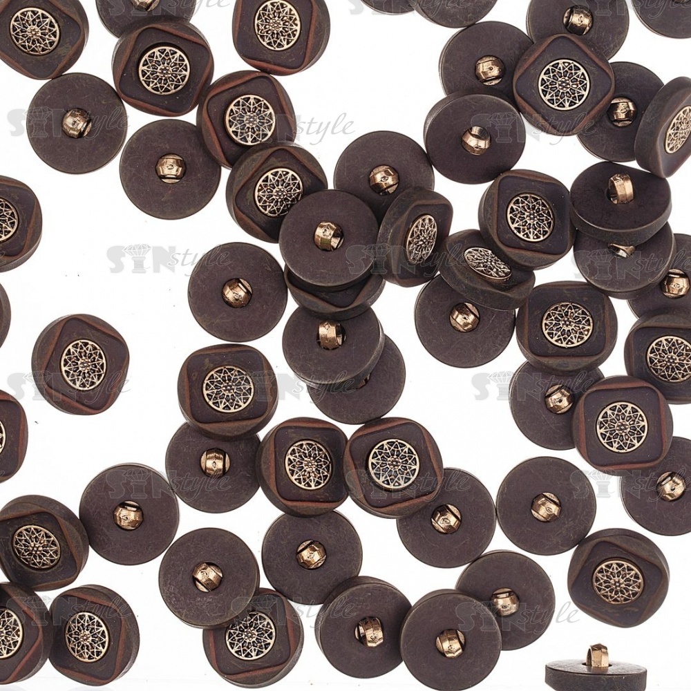 Пуговица металлическая на нодкае, размер 28L, цвет бордовый+золотой