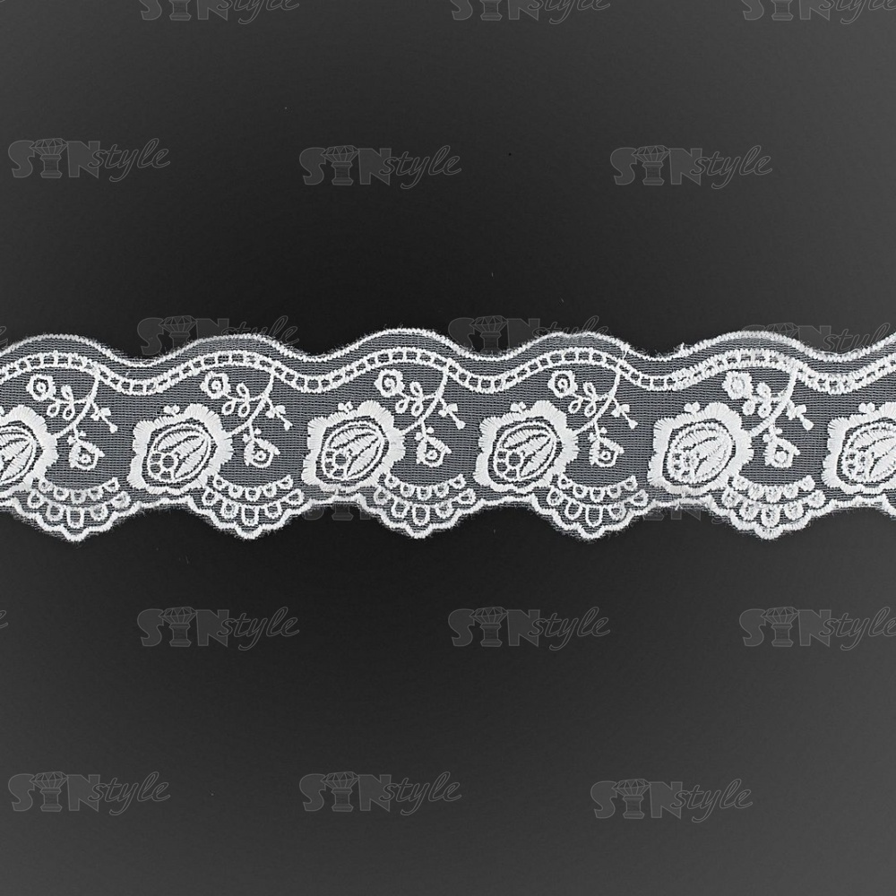 Кружево на сетке белого цвета с белой вышивкой, ширина 60 мм, намотка 15 ярдов