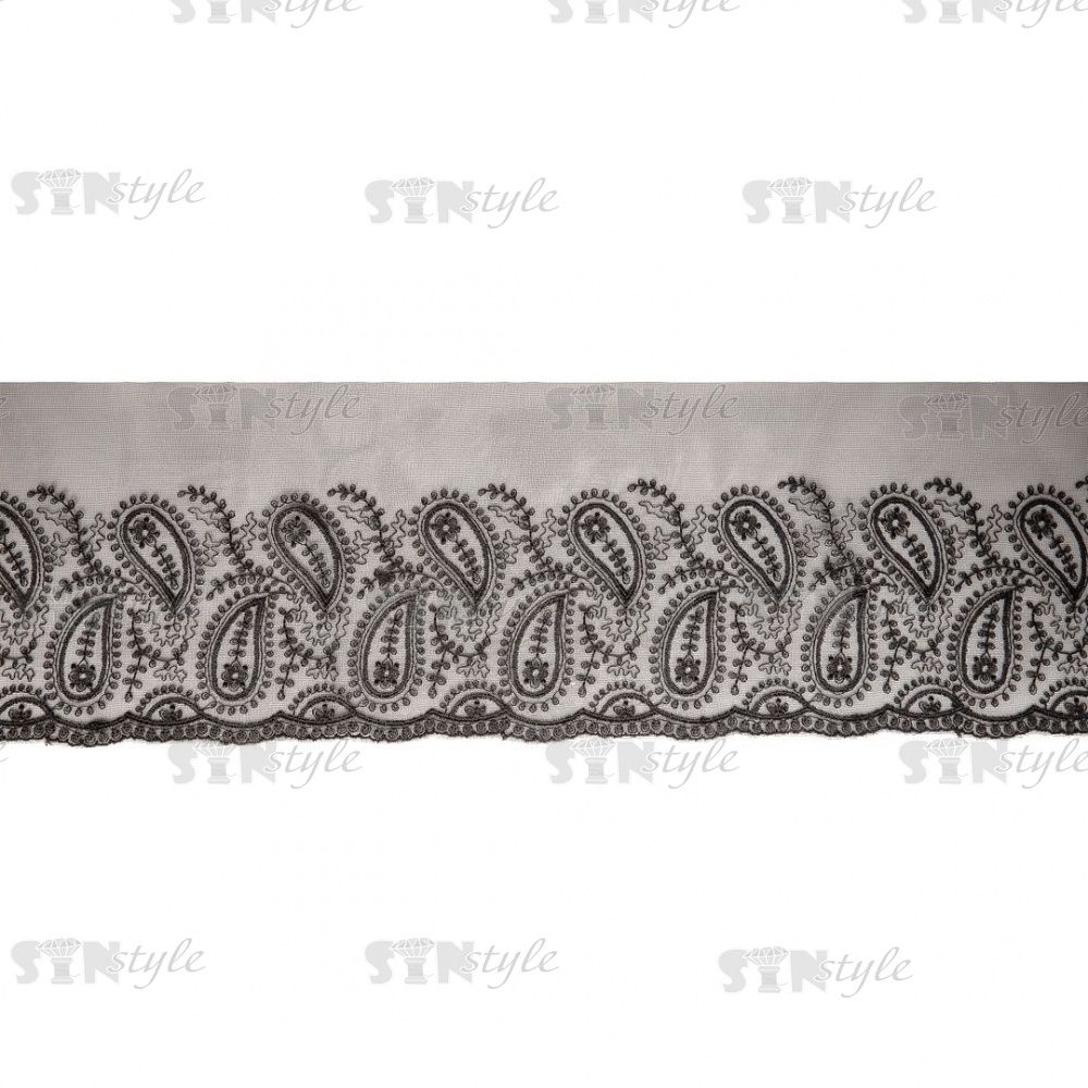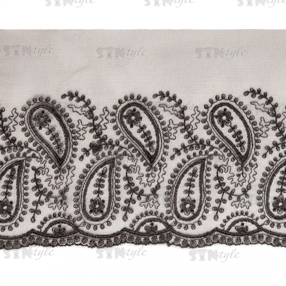 Кружево на сетке черного цвета с черной вышивкой, ширина 150 мм, намотка 15 ярдов