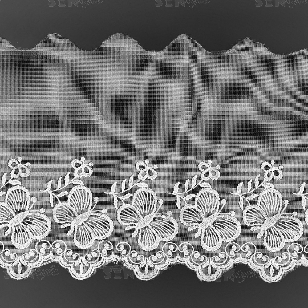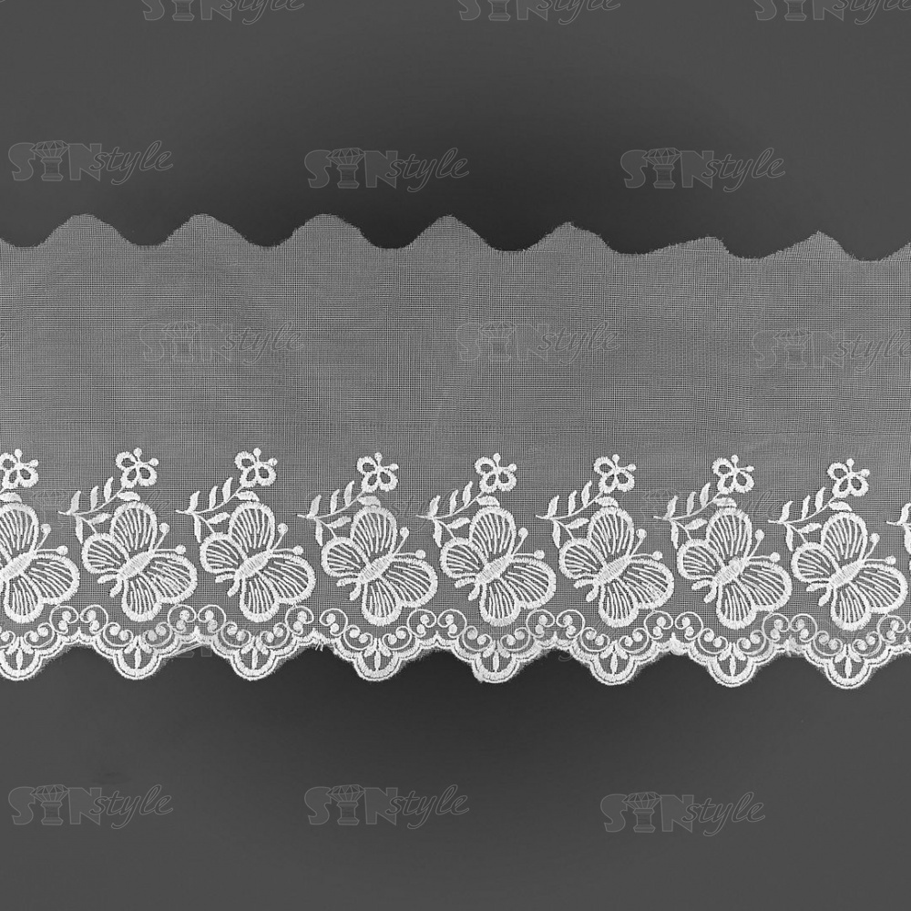 Кружево на сетке белого цвета с белой вышивкой, ширина 185 мм, намотка 15 ярдов