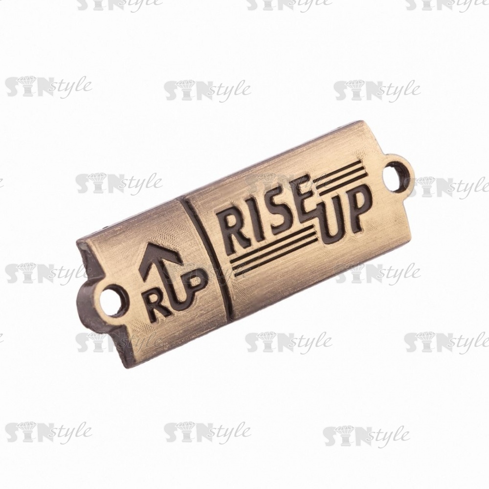 Декоративное классическое украшение, металлическая прямоугольная нашивка-логотип. Данная модель является универсальной, прекрасно подойдет для декорирования мужской и женской одежды, обуви и аксессуаров, а так может использоваться в разных видах творчества, а именно в скрапбукинге при оформлении альбомов, открыток, декорировании разных поверхностей, а также подойдет для украшения вязаных корзинок, сумок, рюкзаков и других изделий ручной работы. Крепится с помощью двух отверстий для пришивания.