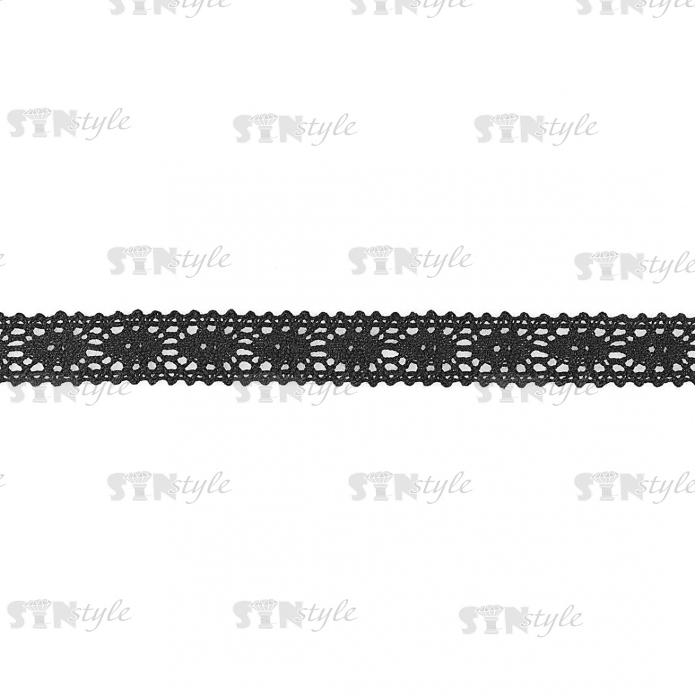 Кружево вязаное плетеное, ширина 20 мм, цвет черный, намотка 15 ярдов