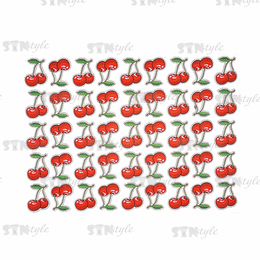 Термоаппликация "Вишенки" из стеклянных страз, размер 42х52 мм. 45 шт на листе, лист 240х400 мм