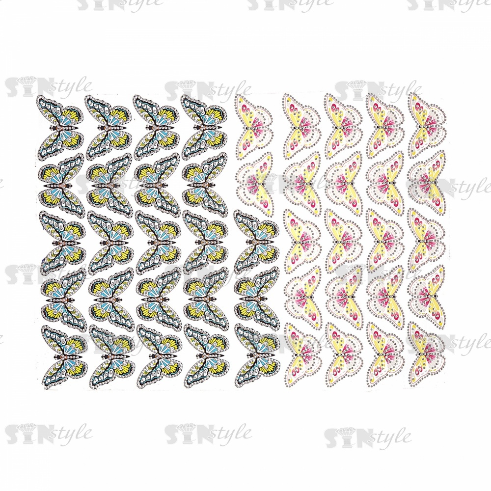 Термоаппликация "Бабочка" из стеклянных страз, размер 65х37 мм, 45 шт на листе, лист 240х400 мм