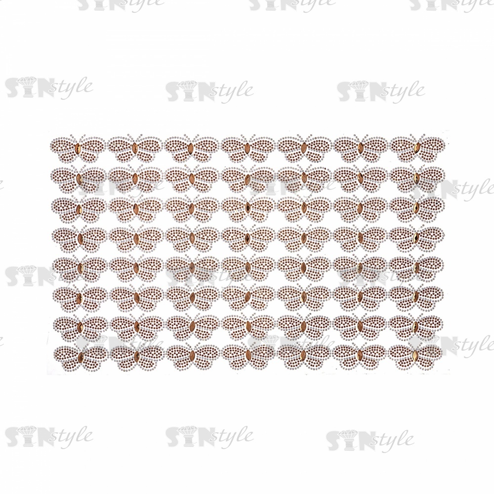 Термоаппликация "Бабочка" из стеклянных страз, размер 65х37 мм, 45 шт на листе, лист 240х400 мм