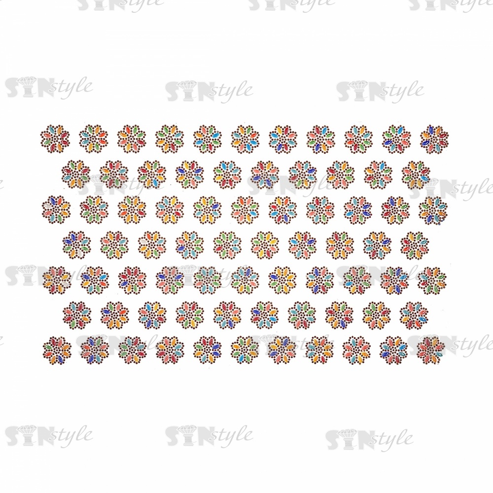 Термоаппликация "Цветок" из стеклянных страз, цвет радужный, размер 28х28 мм, 74 шт на листе, лист 240х400 мм