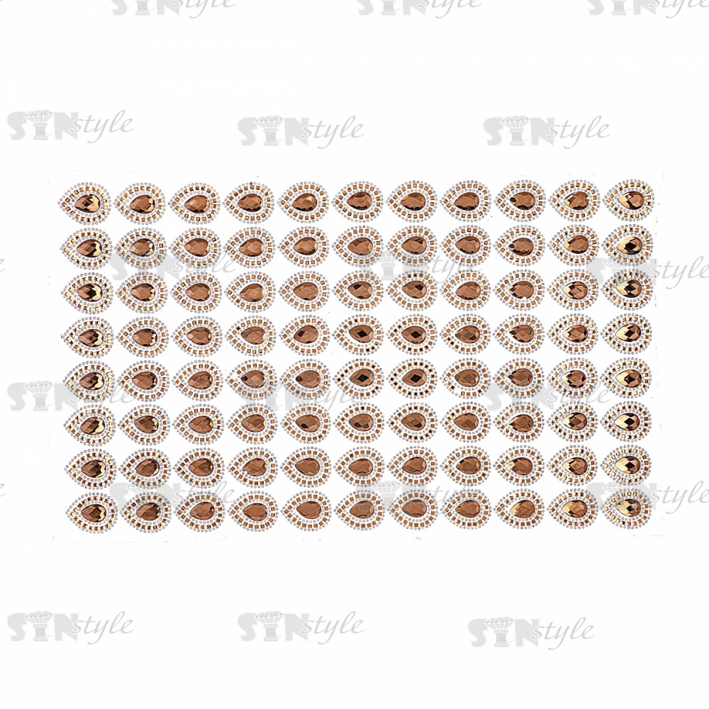 Стразы клеевые стеклянные на листе №6. цвет золотой, размер 240х400 мм