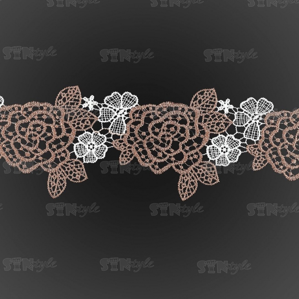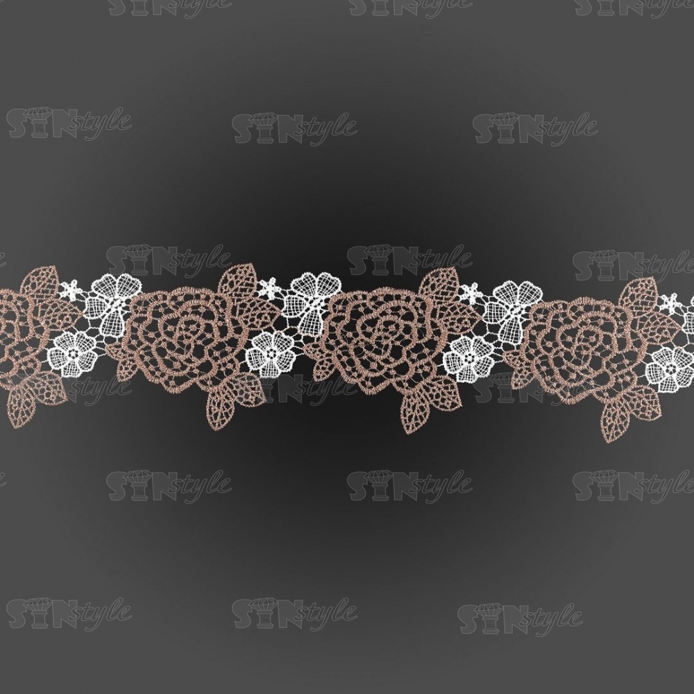 Кружево вязаное ажурное, цвет белый и грязно-розовый, намотка 15 ярдов, ширина 95 мм