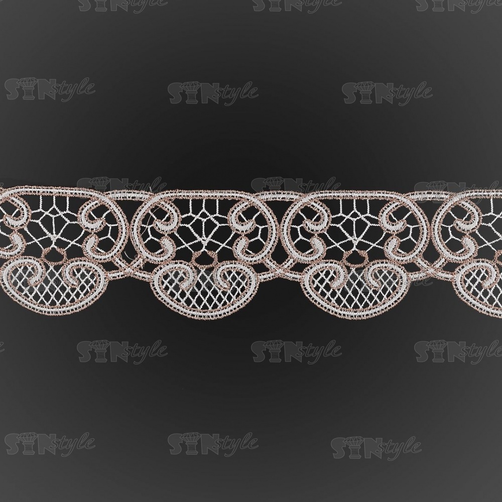Кружево вязаное ажурное, цвет белый и грязно-розовый, намотка 15 ярдов, ширина 65 мм