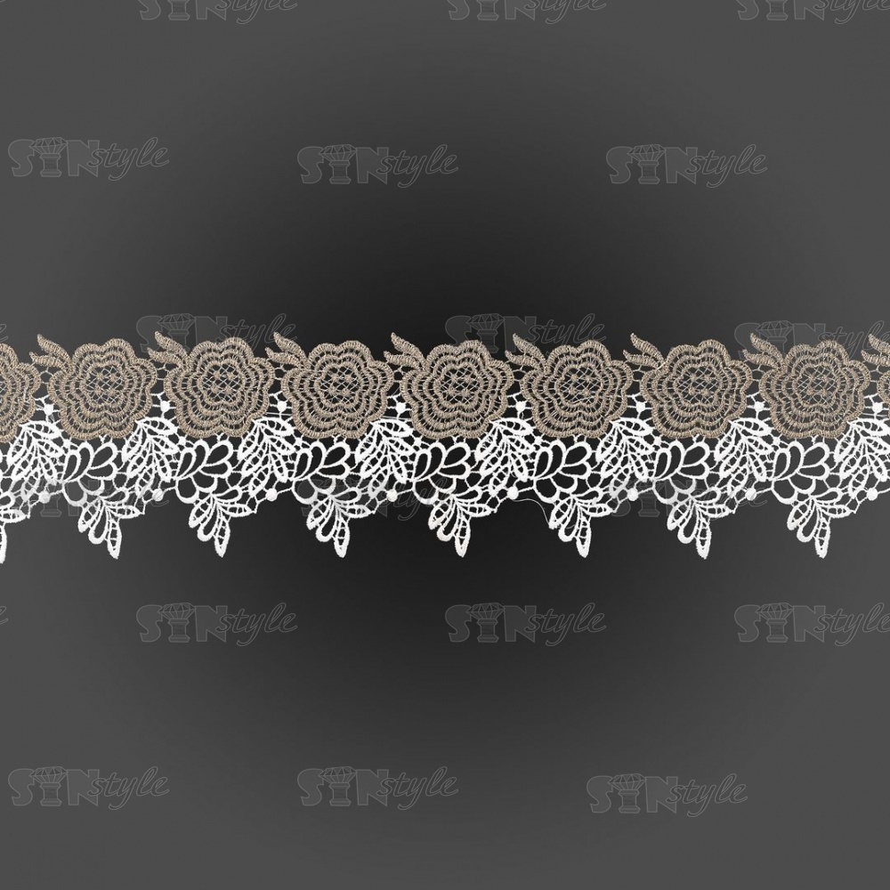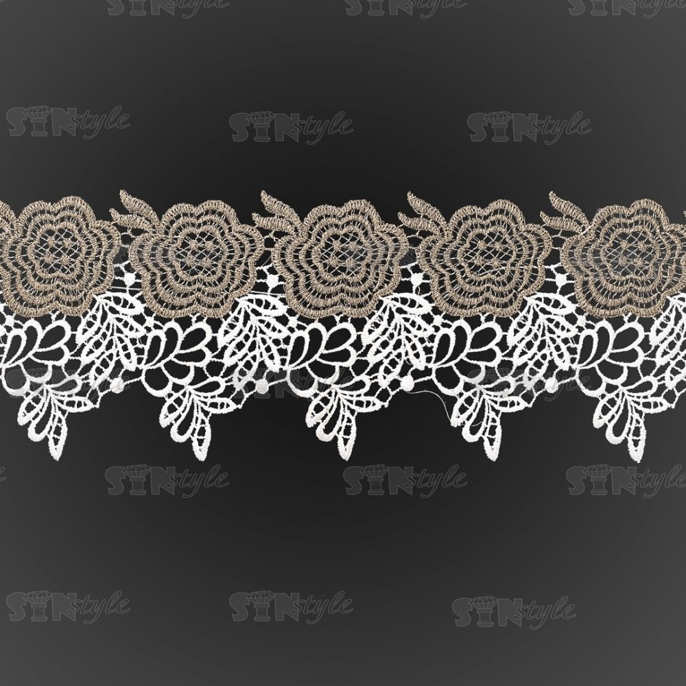 Кружево вязаное ажурное, цвет золотой с белым, намотка 15 ярдов, ширина 100 мм