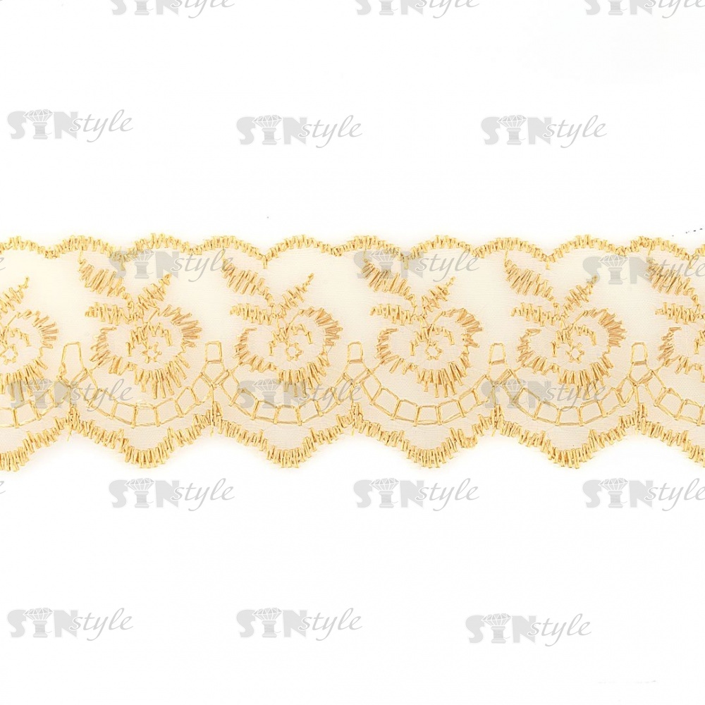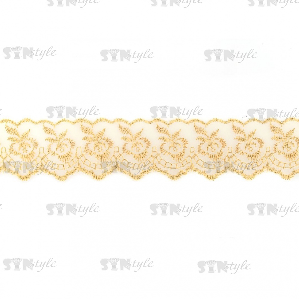 Кружево декоративное, нежная вышивка на тонкой капроновой основе, ширина 40 мм, цвет св. горчичный (156), намотка 10 ярдов