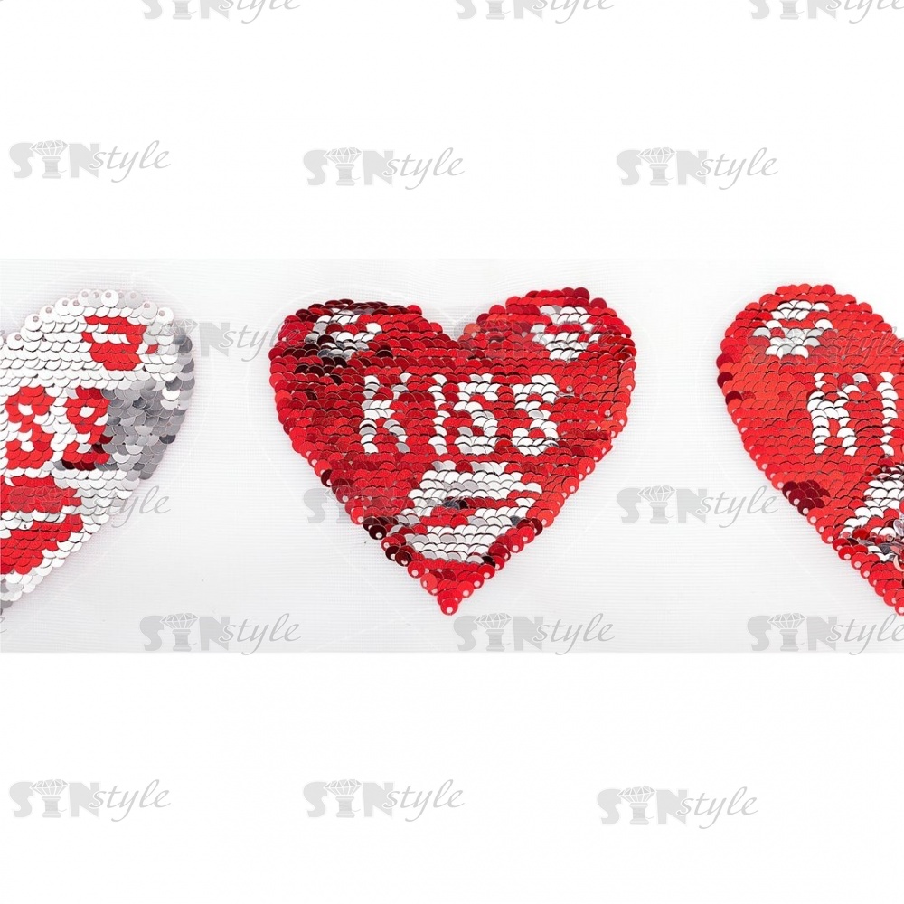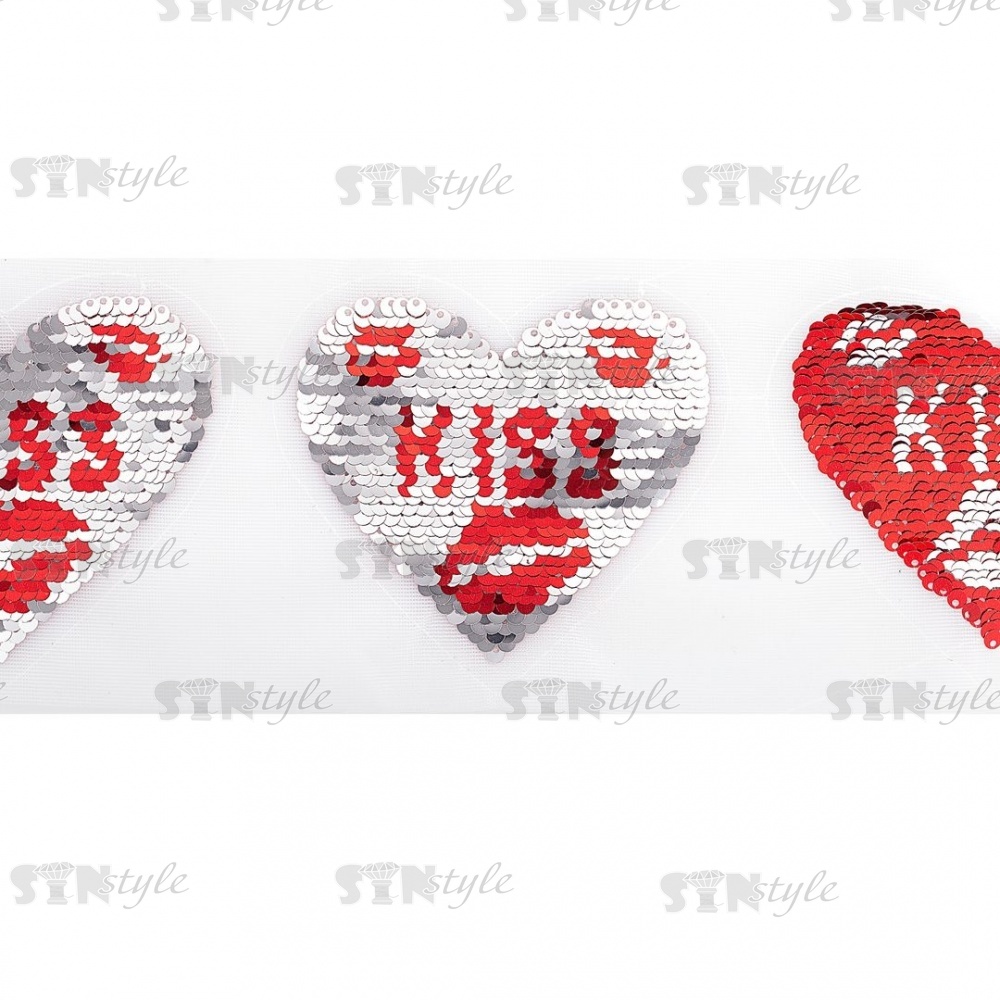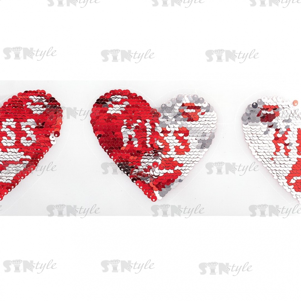 Аппликация на сетке из пайеток "Сердце", цвет красный+серебряный, размер 95 х 85 мм