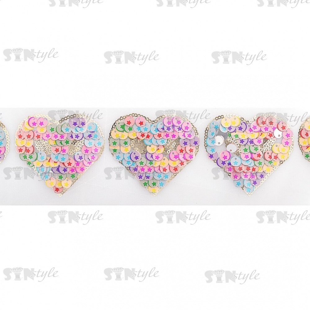 Аппликация на сетке из пайеток "Сердце", разноцветная, размер 75 х 65 мм, рулон 123 шт.