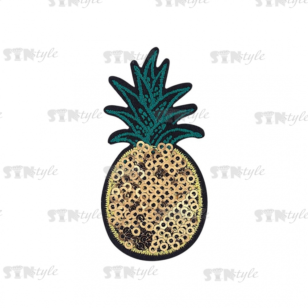 Термоаппликация "Ананас" с пайетками, размер 35х70 мм, цвет золото/основа черная