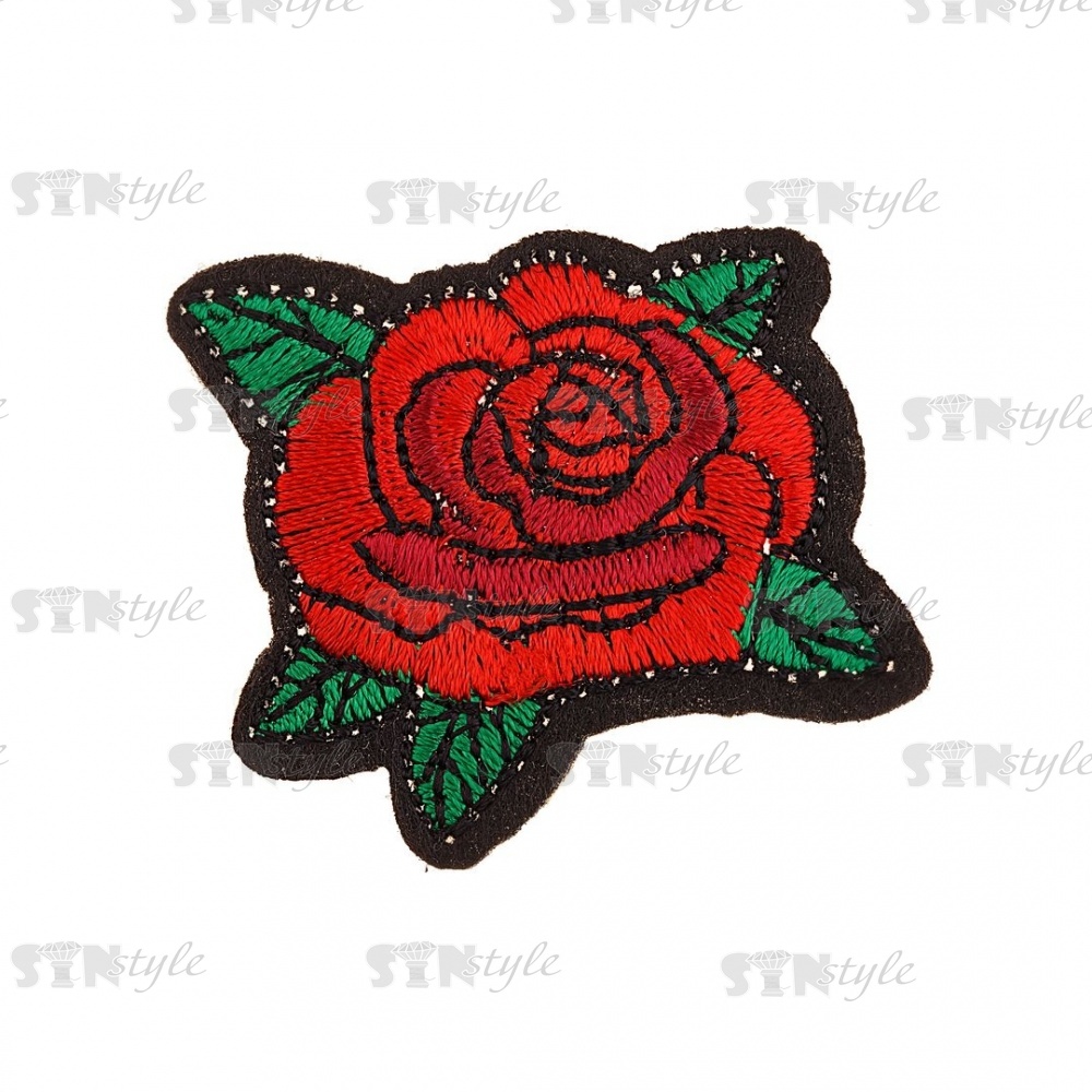 Термоаппликация "Цветок", размер 40х38 мм, цвет красный+зеленый/основа черная