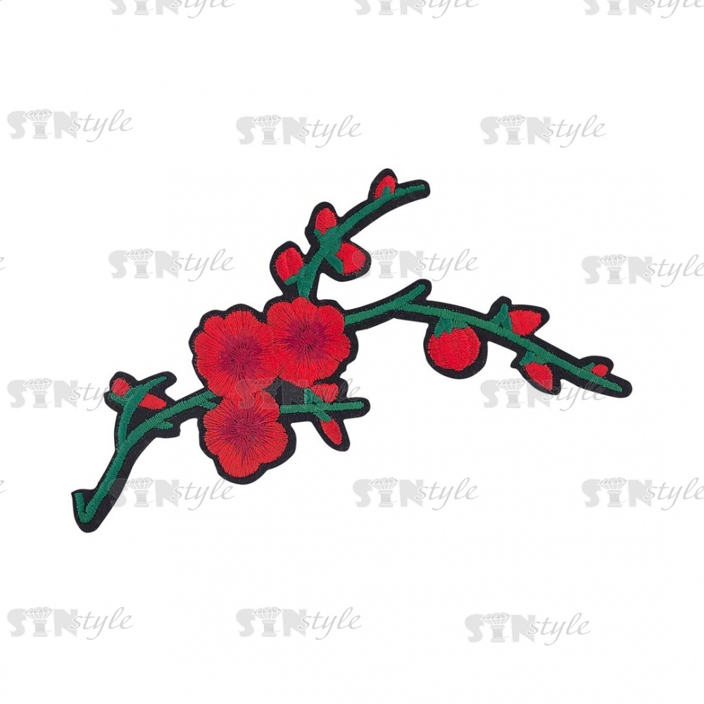 Термоаппликация "Цветок", размер 75х135 мм, цвет красный+зеленый/основа черная