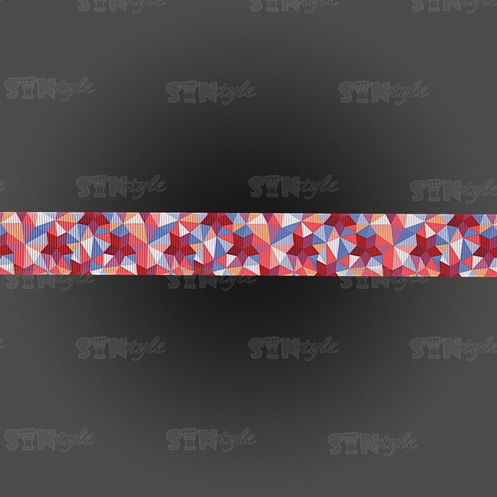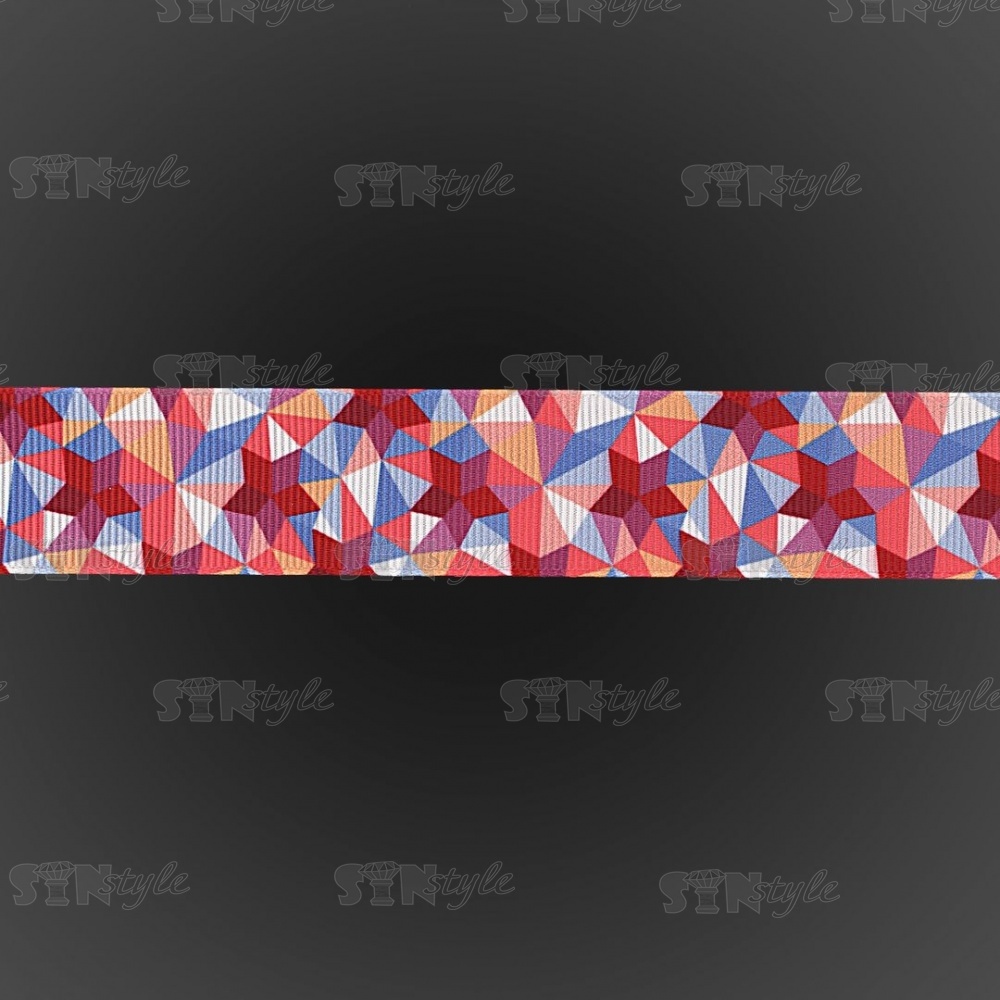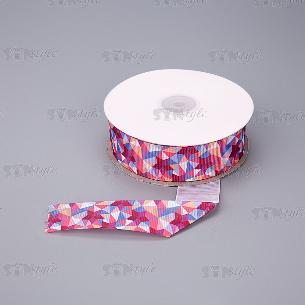 Лента репсовая, с геометрическим принтом, ширина 25 мм, цвет бордовый+микс, намотка 20 ярдов