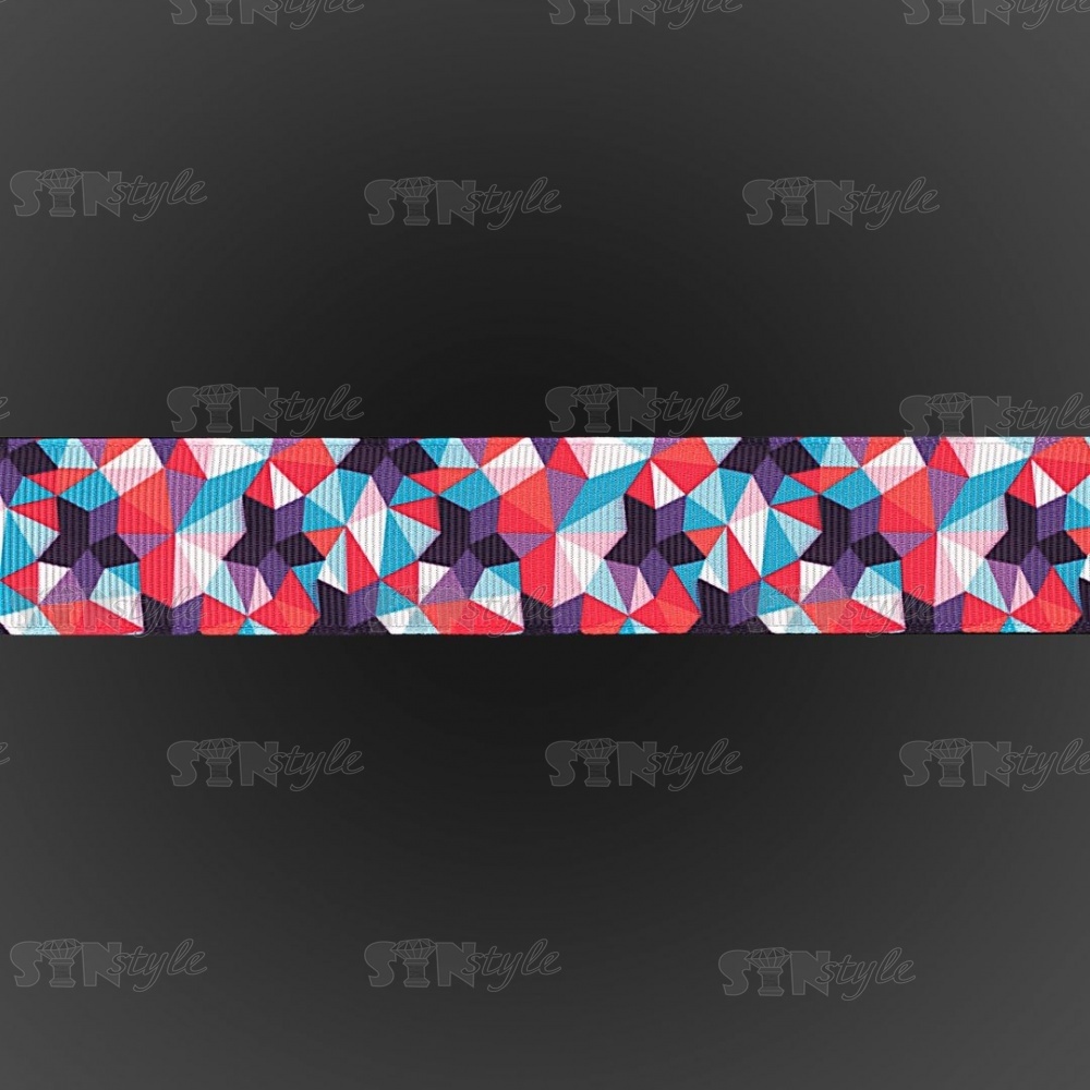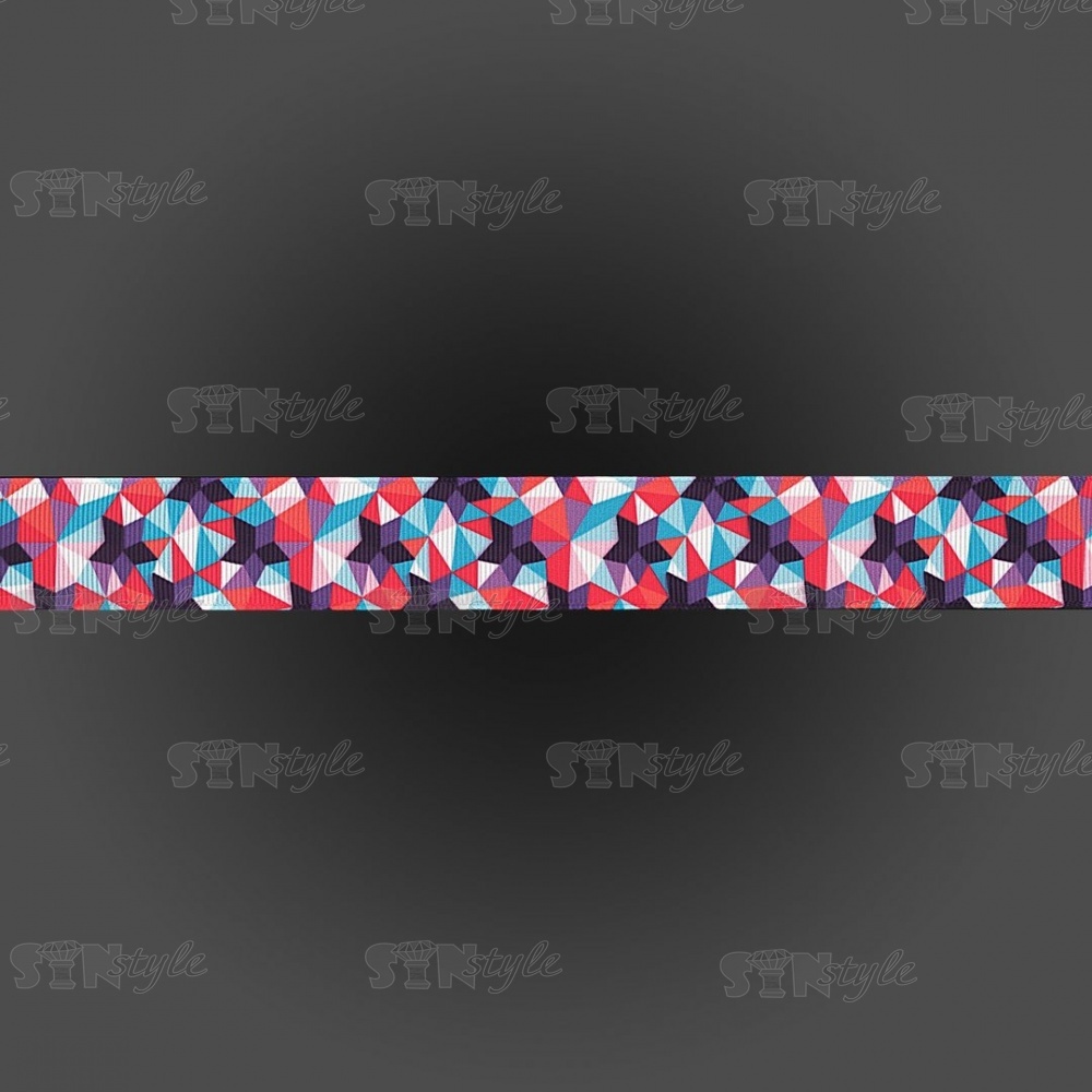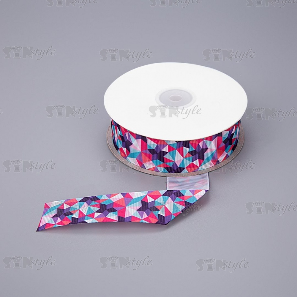 Лента репсовая, с геометрическим принтом, ширина 25 мм, цвет фиолетовый+микс, намотка 20 ярдов