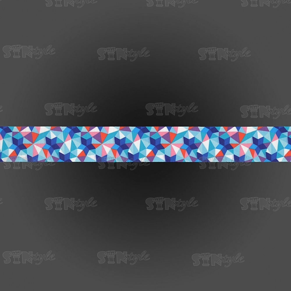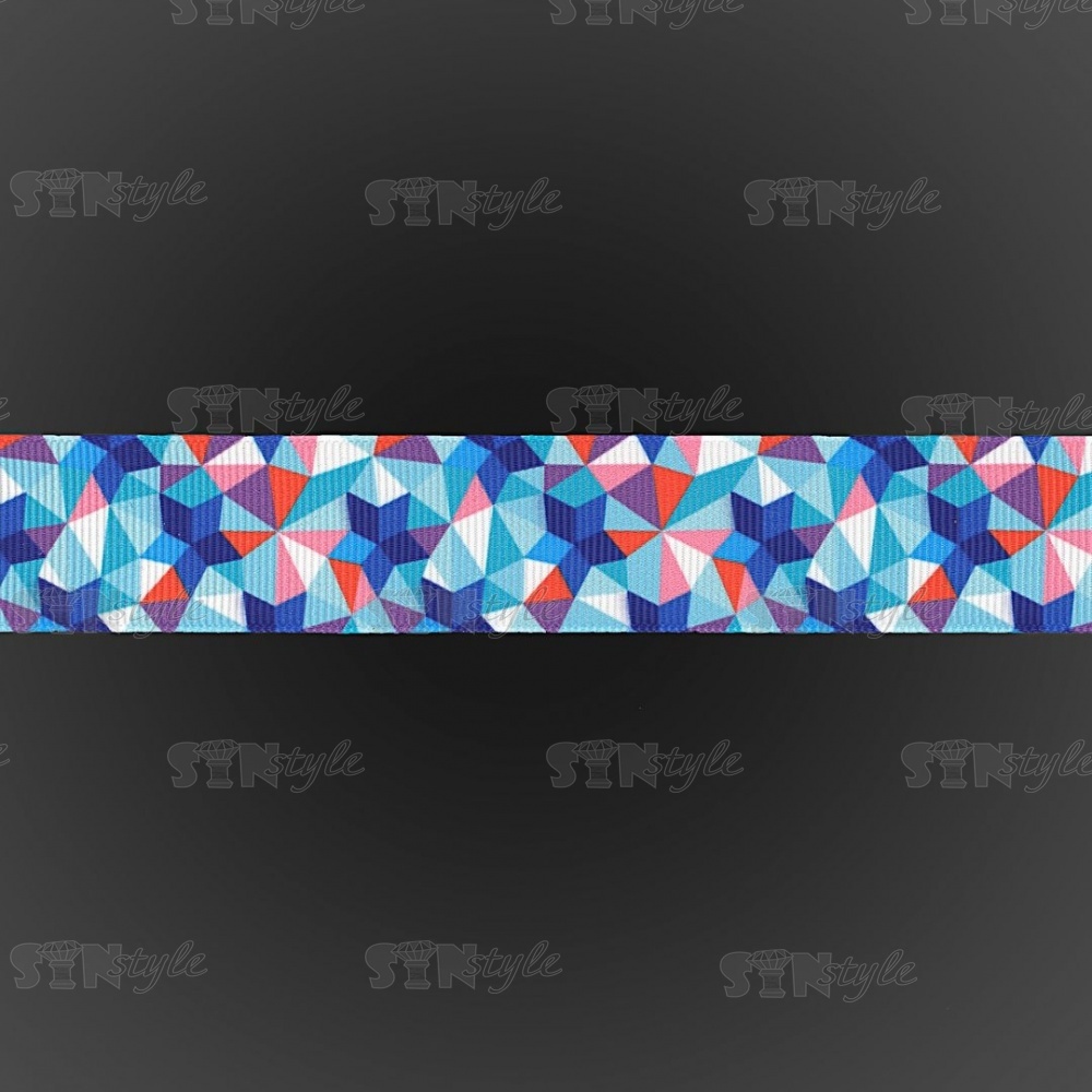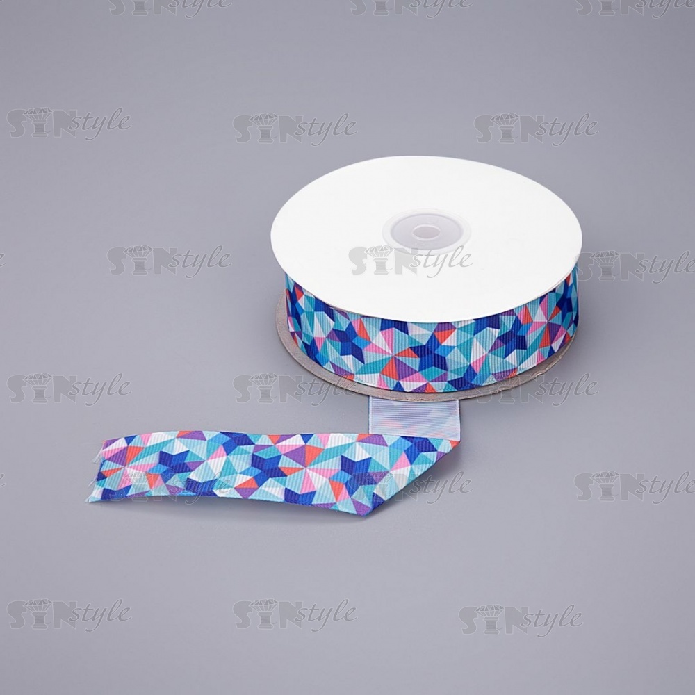 Лента репсовая, с геометрическим принтом, ширина 25 мм, цвет синий+микс, намотка 20 ярдов