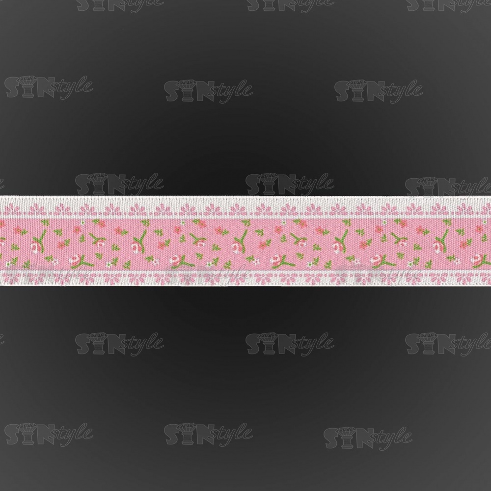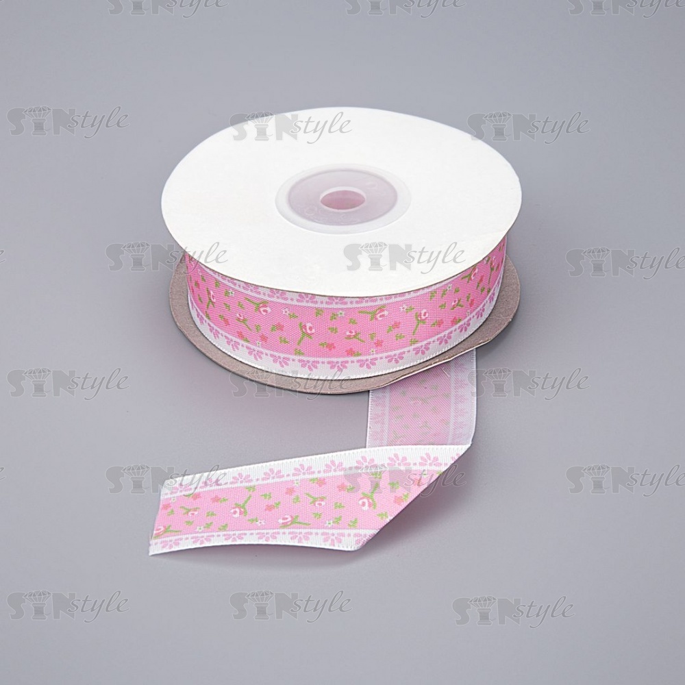 Декоративная атласная лента с цветочным принтом, цвет розовый, ширина 25 мм, намотка 20 ярдов