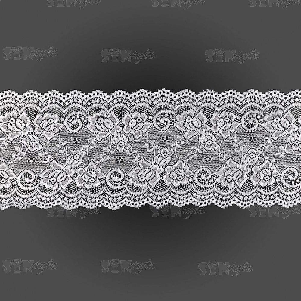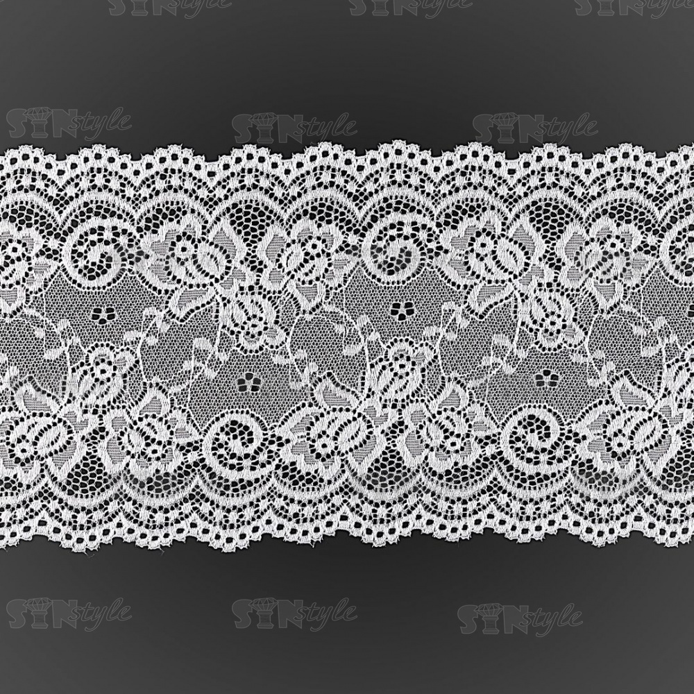 Кружево эластичное, ширина 145 мм, цвет белый, намотка 15 ярдов