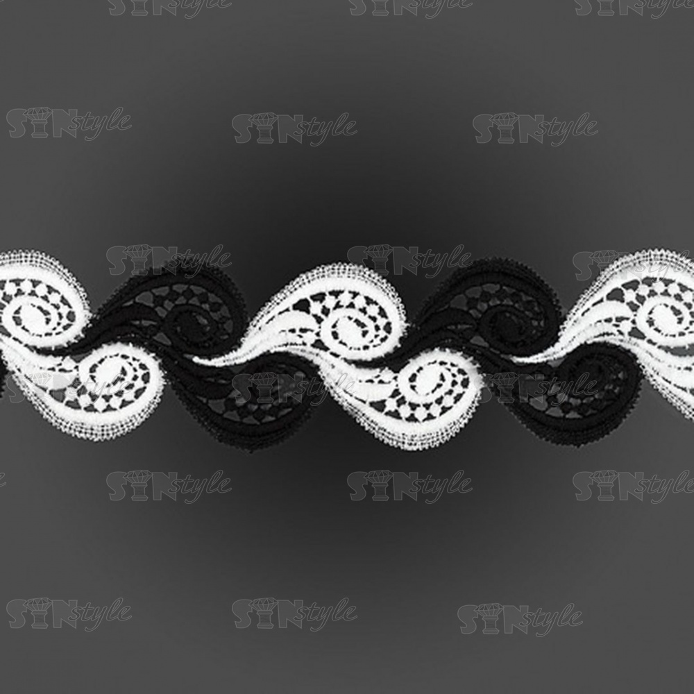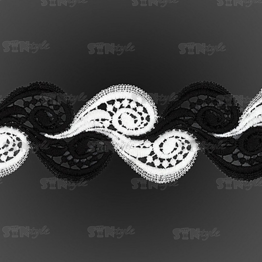 Кружево вязаное ажурное, цвет черный с белым, намотка 10 ярдов, ширина 60 мм